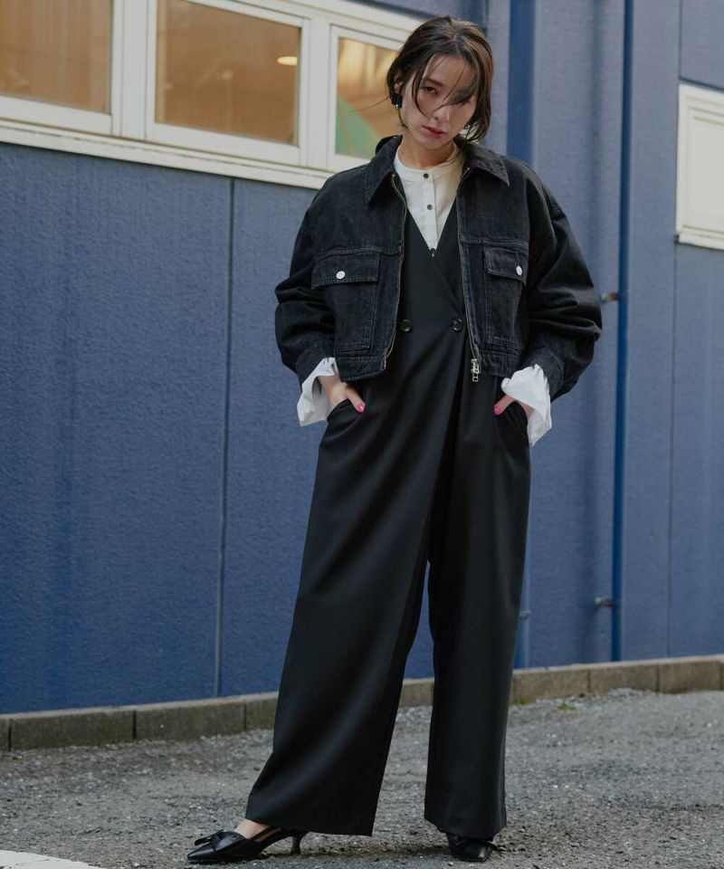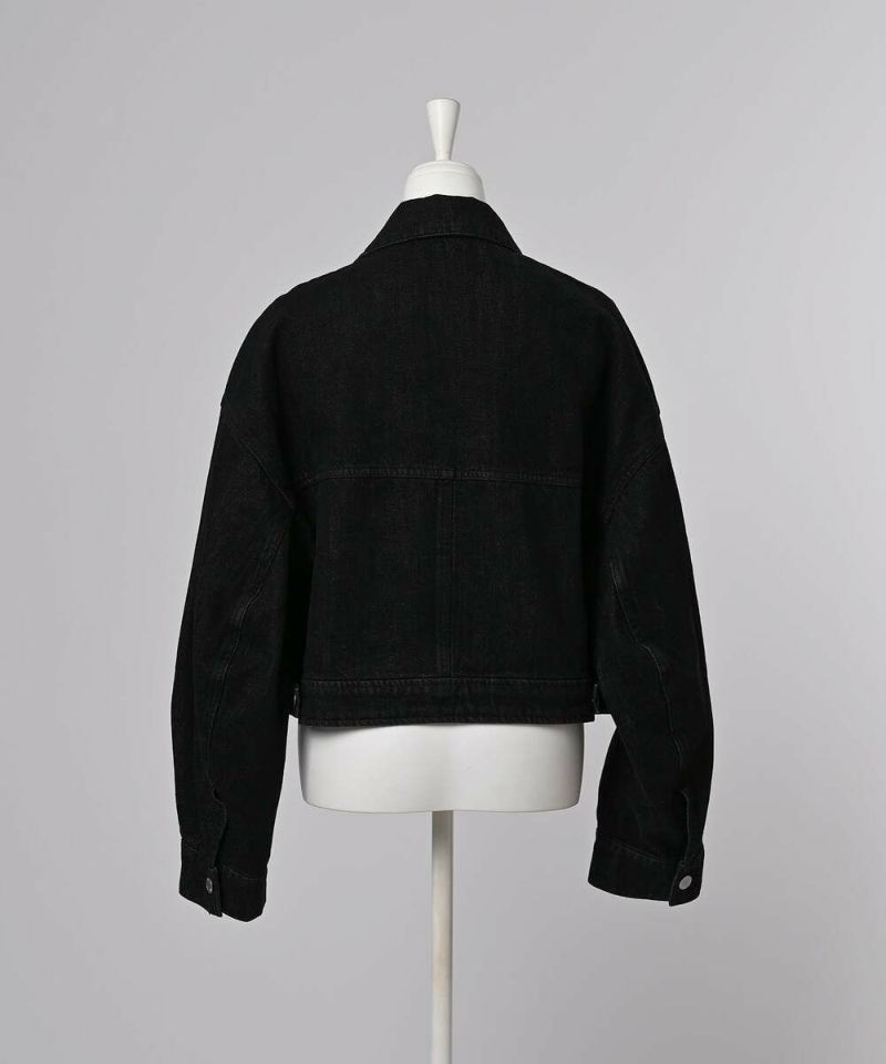 デニムジャケットはカジュアルなイメージが強いですが、程よい張り感と高級感のある生地を採用する事により、綺麗めなアイテムに仕上げる事ができました。やや着丈が短いボックスシルエットが特徴。裾サイドのタックボタンで丸みのあるフォルムへと調整が可能。アレンジ次第で幅広いボトムに合う着回し力の高さも嬉しいポイント。ダブルジップ仕様でバランスも取りやすく、お好みのスタイルで開閉ができるので幅広いコーディネートをお楽しみいただけます。※この商品は多少色落ちする場合がありますのでご注意くださいませ。濡れた状態での放置もお避け下さい。お洗濯の際は単品洗いをおすすめします。【model】H160 B80 H85