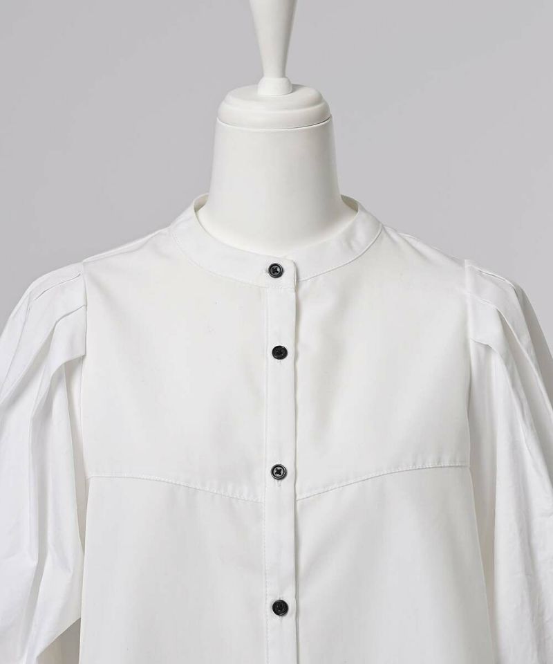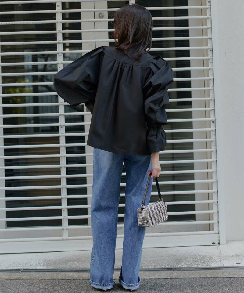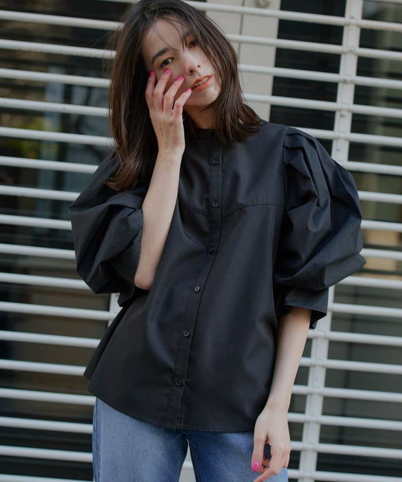 肩を覆うようにタックを施したボリュームたっぷりのスリーブデザインが魅力のブラウス。袖には軽やかでありながらシルエットをキープする素材を採用し、身頃にはふわりと揺れながらボディラインをひろわないライトな着心地の素材を採用することで、異素材をドッキングさせた理想の着心地が叶うアイテム。袖口のゴム切り替えでふわっと広がるカフスは、長袖・七分丈・半袖と袖丈を自由に調整でき、ロングシーズン着用可能。ノーカラーの上品なシルエットとのバランスを取ることで一枚ではもちろん、オールインワン・ワンピース・ベストなどのレイヤードスタイルにも取り入れやすい着回しの効くアイテムに。普段使いからオケージョンまで幅広いシーンで着用できます。【model】H160 B80 H85