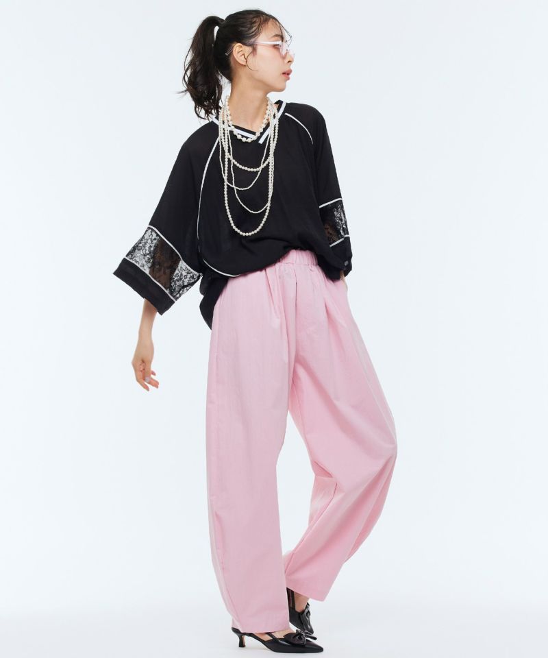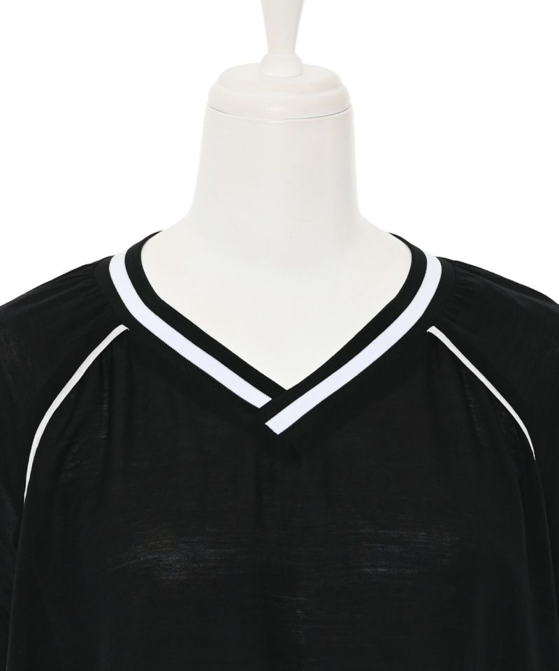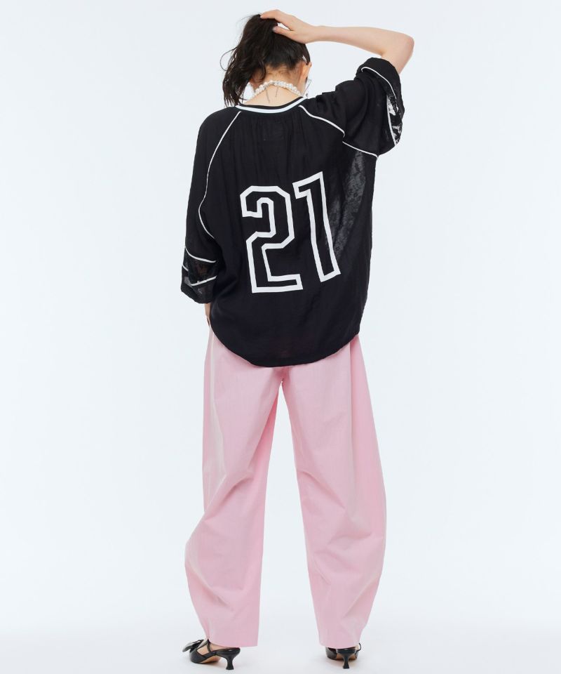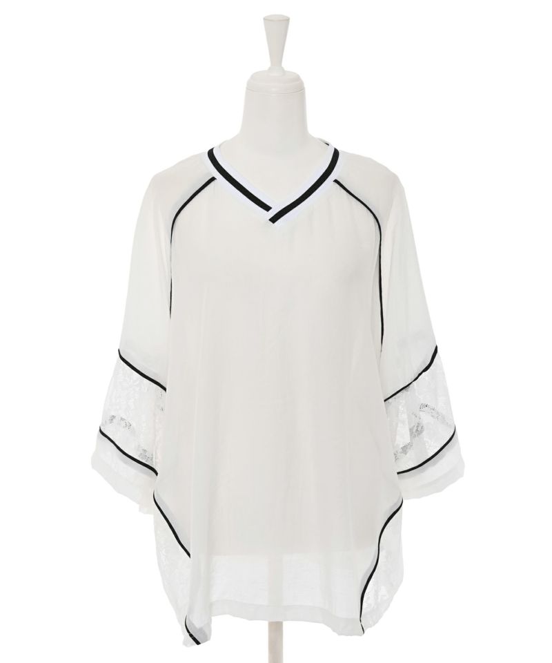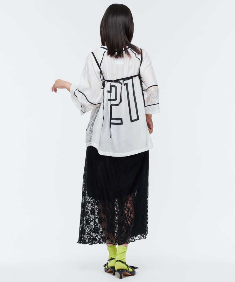ユニフォームデザインが目を惹くスポーティーなTシャツ。レース素材を部分的に取り入れることで、女性らしさもプラスされたデザインに。これからの季節にピッタリな薄手で風通しの良い素材感。【model】H165 B78 H83 / H163 B78 H84