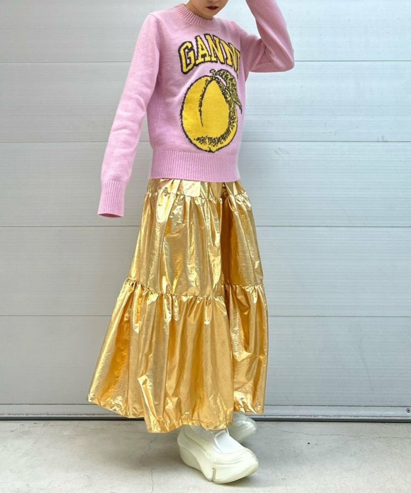 デンマーク発のブランド GANNIは、「サステナブル」と「ファッション」には相容れないものがあるという心構えから、あえてサステナブルファッションブランドとは名乗らず、ファッションの世界に身を置きながら、状況を変えてポジティブな影響をもたらそうと奮闘している。 取り組みを通じて変化を追求し、画期的な新素材やアップサイクルの生地を積極的に取り入れつつ、デザイン性が高く一生着られる服づくりに挑戦。【model】H163 B78 H84着用サイズ:Sモデル身長:153cm着用サイズ:XS