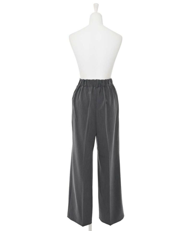 裾にかけて少しルーズなワイドパンツ。センタープレスが高級感をプラスし、スタイルアップ効果を。ウエストゴムを採用し、ストレスフリーに綺麗見せさせてくれるアイテム。オケージョンスタイルにもオススメ。【model】:H165 B78 H83 / H160 B80 H85