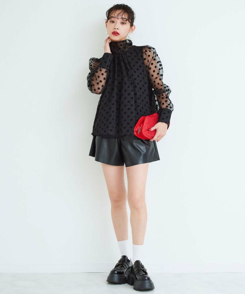 光沢のあるフェイクレザーを使用したショートパンツ。 ウエストの幅広いゴムシャーリングがストレスフリーに着用でき、ポケット付きで機能性も◎ 薄手でコンパクトなサイズ感なので、インナーパンツとしても着用可能。 秋冬にはタイツ合わせ等でシーズンライクに着用でき、春先までロングシーズン活躍するアイテム。【model】H156H163 B78 H84