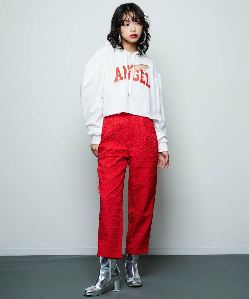 トレンドのフクレジャガード生地を使用したパンツ。ウエストタックとハリ感のあるシルエットが綺麗めスタイルにピッタリ。カジュアルスタイルでも着回し可能なテーパードパンツはマストアイテム。GO-YA MA-1とのセットアップがオススメ。【model】:H163 B78 H84 / H165 B78 H83
