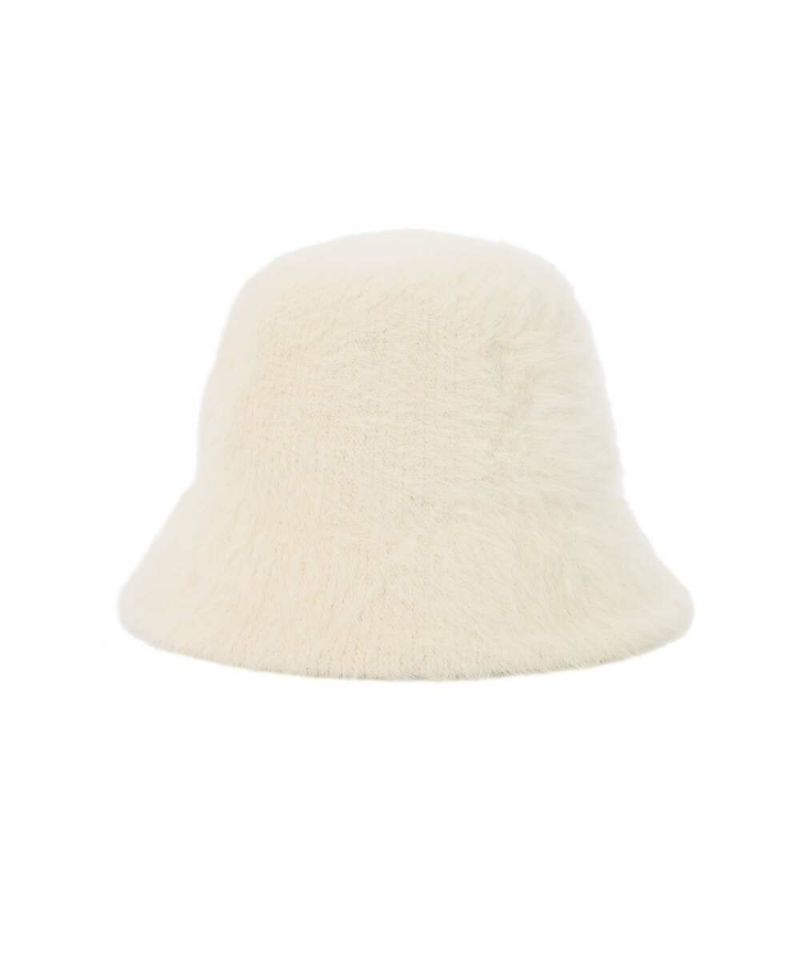 アンゴラのふわふわの毛が上品なバケットハット。全体のバランスが取りやすい、コンパクトなデザイン。