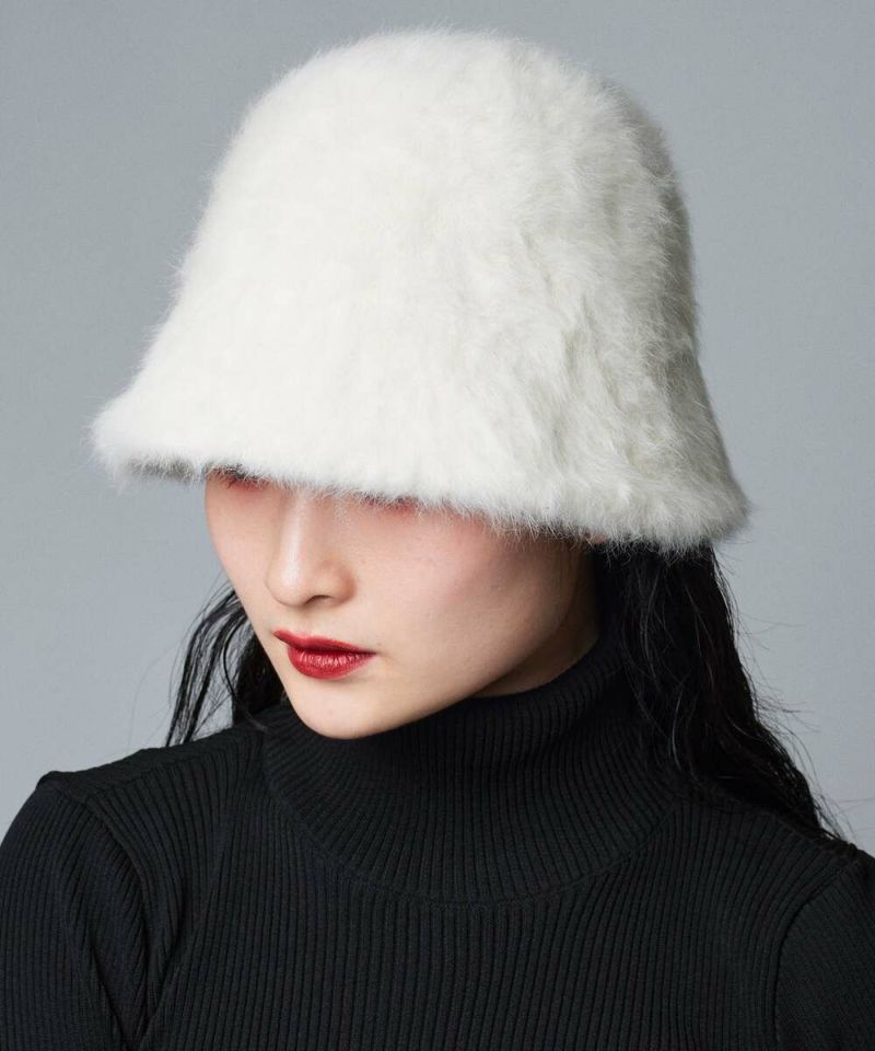 アンゴラのふわふわとした表面感が女性らしい印象に。幅広いジャンルで活躍してくれるので、ワードロープに一つはおさえておきたいアイテム。帽子内部には、サイズ調整ができる紐付き。