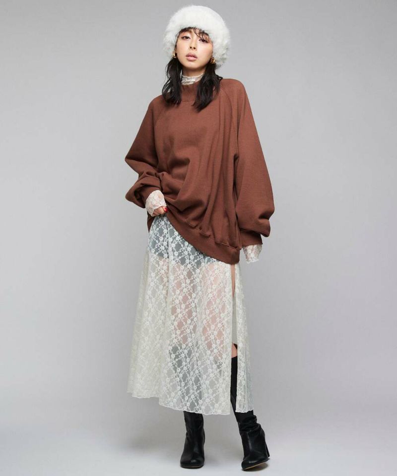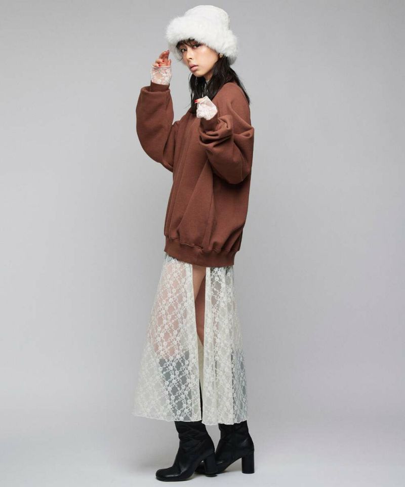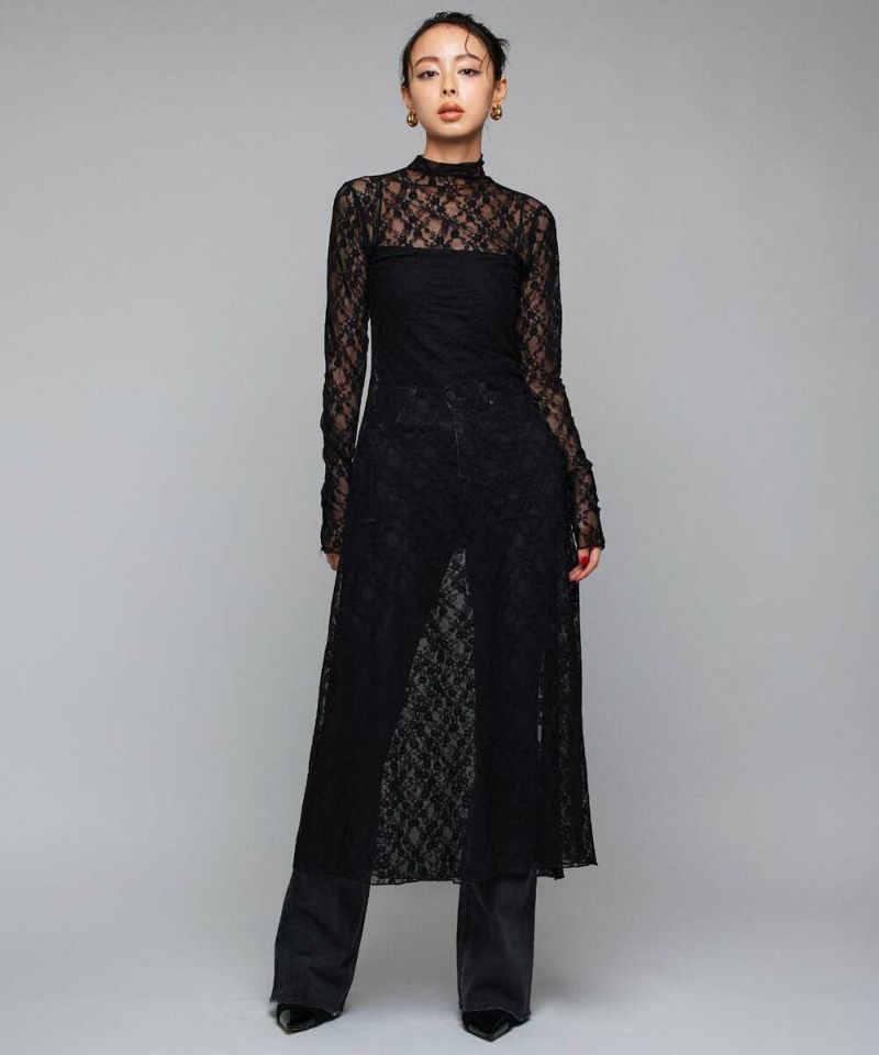 透け感のあるレースが大人の女性に仕上げてくれるロング丈ワンピース。片方サイドに施された大胆なスリットが抜け感を演出。様々なボトムスとのレイヤードもデザインを生かしてくれるので、オケージョンシーンのみならずデイリーコーデにもフル稼働間違い無し。【model】H165 B78 H83