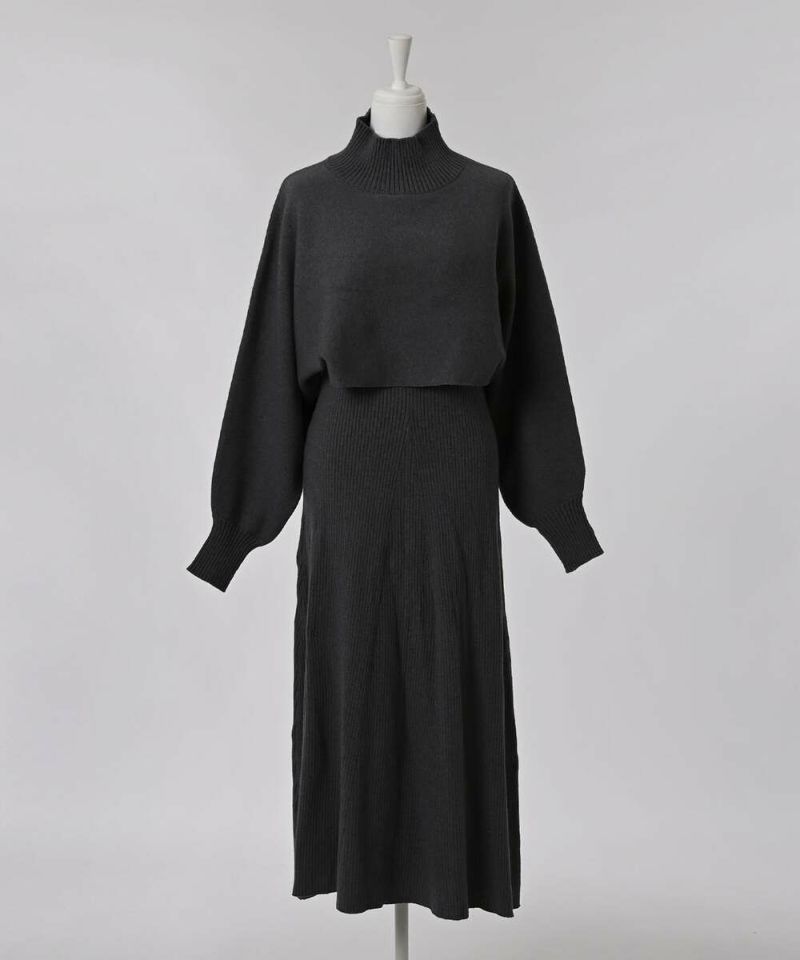 高級感のあるモチっとした肌触りのニットトップスとワンピースがセットになった上品なニットワンピース。シンプルなルックスながら、体のラインを拾わない華奢見せデザイン。シーンに合わせて単品使いができる優秀アイテムです。セットタイプのワンピースはノースリーブワンピースが多いところ、秋冬に1枚でもコーディネートが完成するよう、ロングスリーブ仕様に。厚手過ぎないのでアウターの中でゴワつきにくく、幅広いシーズンで活躍。【model】H160 B80 H85