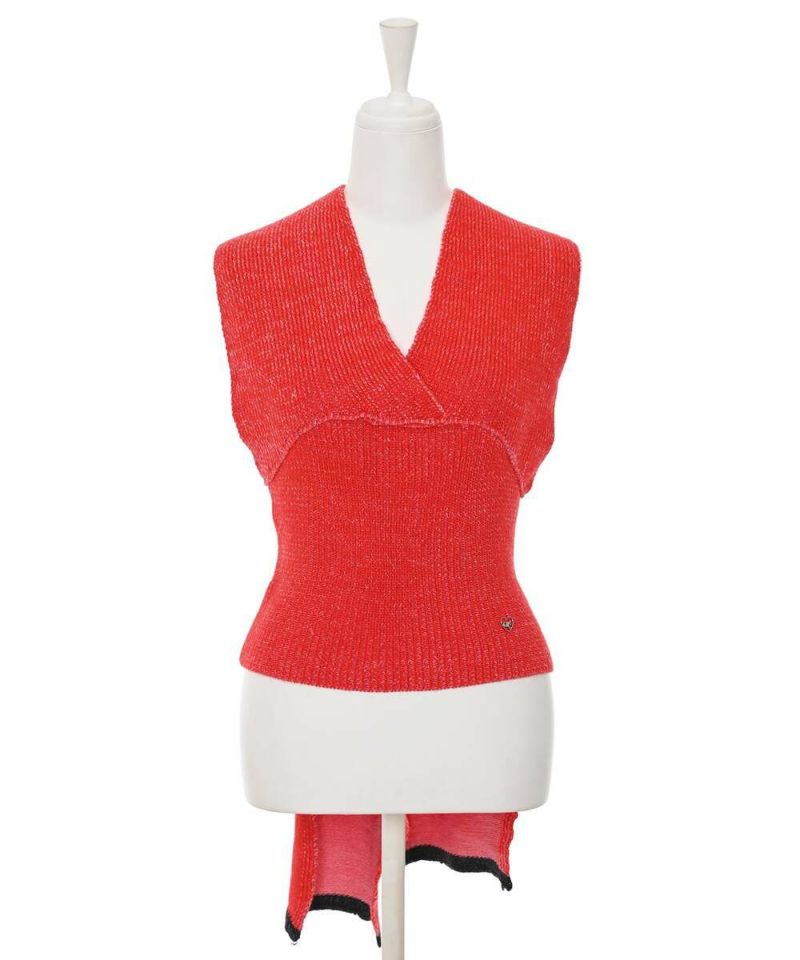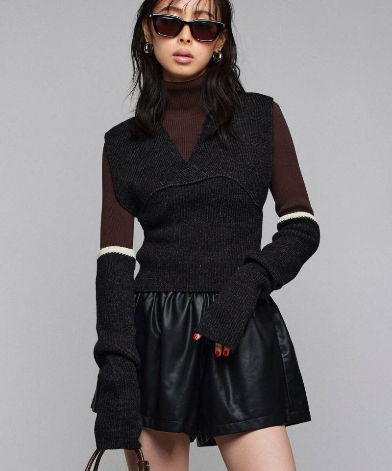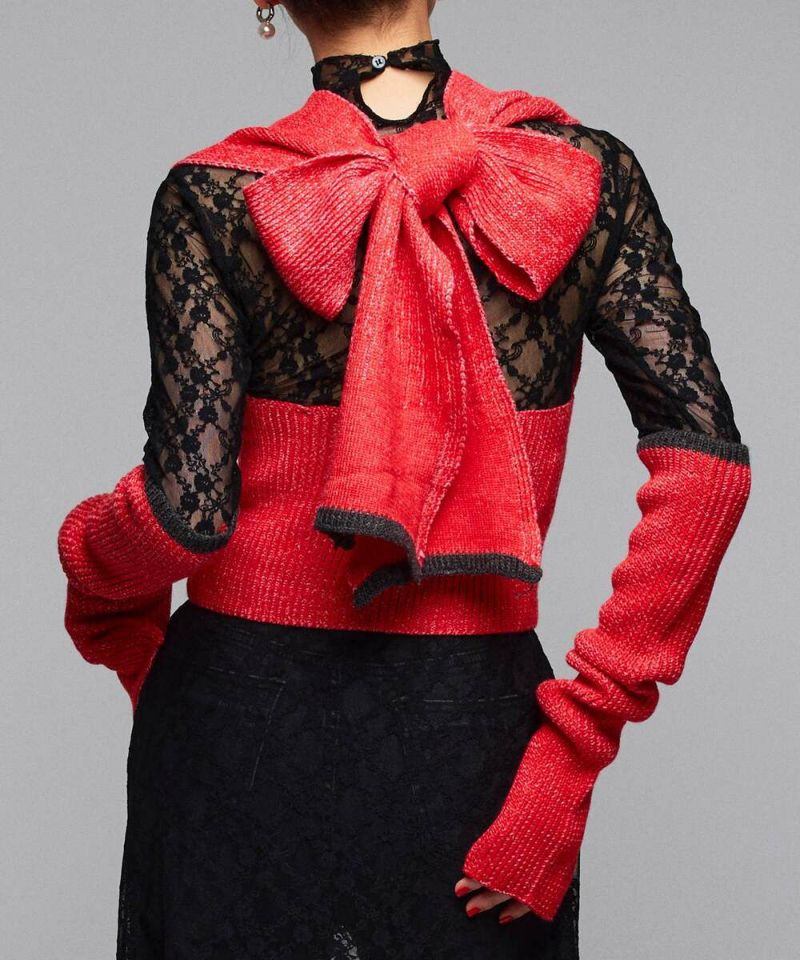 トレンドのアームカバーがセットになったニット。セットでも単品でも着回しできる万能アイテム。トップスも1枚着はもちろん、ビスチェのようにレイヤードしても◎バックオープン&リボンの抜け感とボリュームのバランスが、後ろ姿まで旬な着こなしに。【model】H165 B78 H83