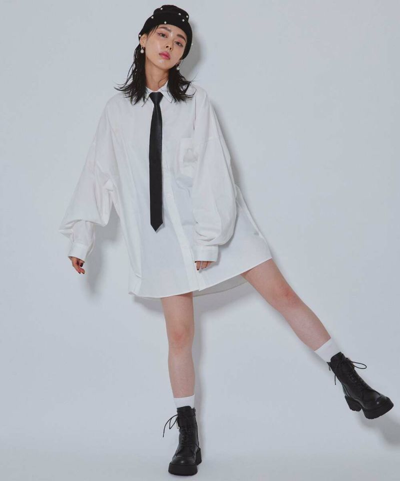 シンプルで大胆なオーバーサイズのシャツ。程よくラフさはありながらもきちんと感もあり、大人の抜け感を演出。ニットやスウェットとのレイヤードスタイルにもオススメなアイテム。【model】:H165 B78 H83 / H163 B78 H84