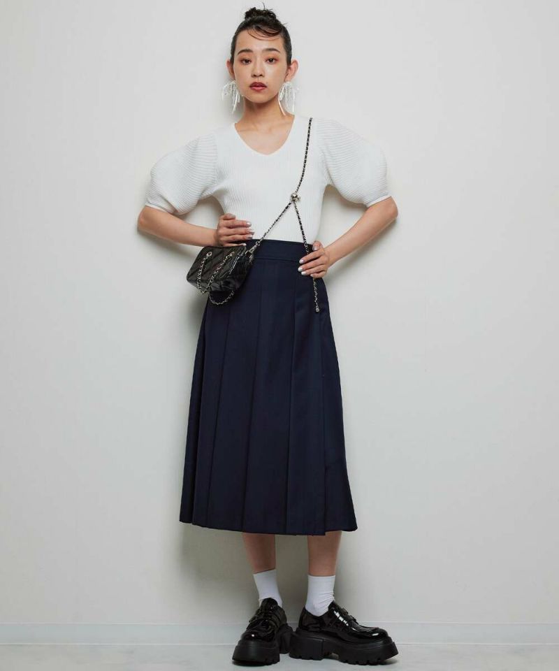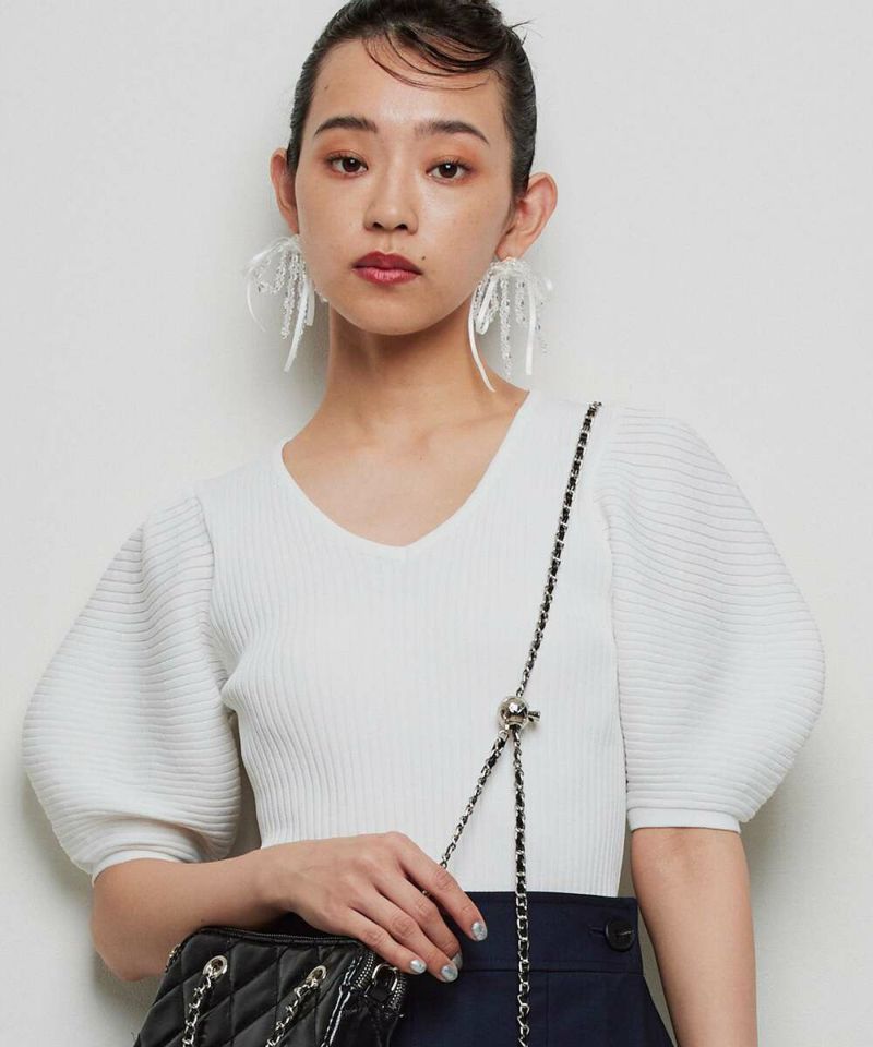 ボリュームのあるパフスリーブが印象的なニットトップス。Vネックデザインで華奢見えし、抜け感をプラス。カジュアルから綺麗めまで着回しできるシンプルなデザインで、一枚持っておくだけと重宝するアイテム。 【model】:H165 B78 H83 / H163 B78 H84/H160 B80 H85
