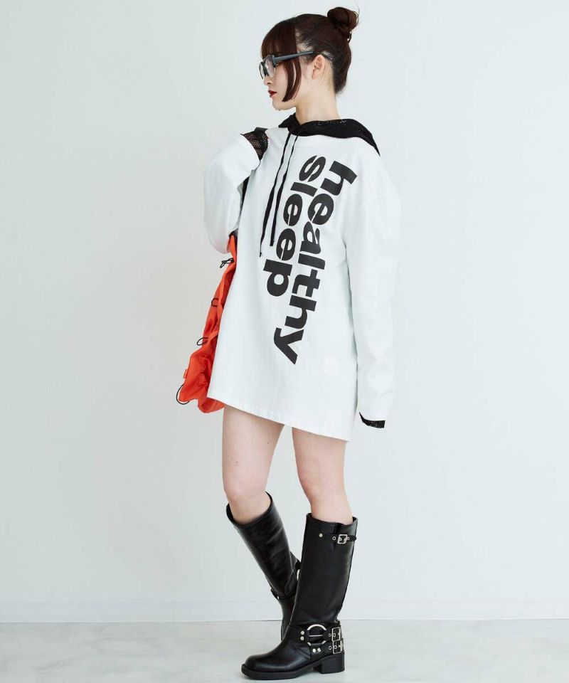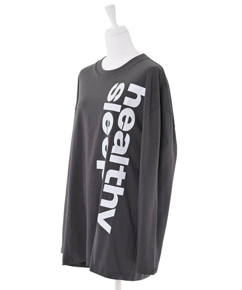 ロゴデザインのベーシックなロングTシャツ。袖丈が長めでバランスが取りやすく、インでもアウトでも着用しやすいサイズ感。パンツ・スカートどちらとも好相性。 カジュアルから綺麗めまで幅広く活躍。【model】:H165 B78 H83 / H163 B78 H84/156cm