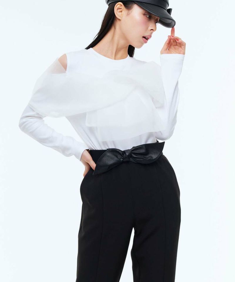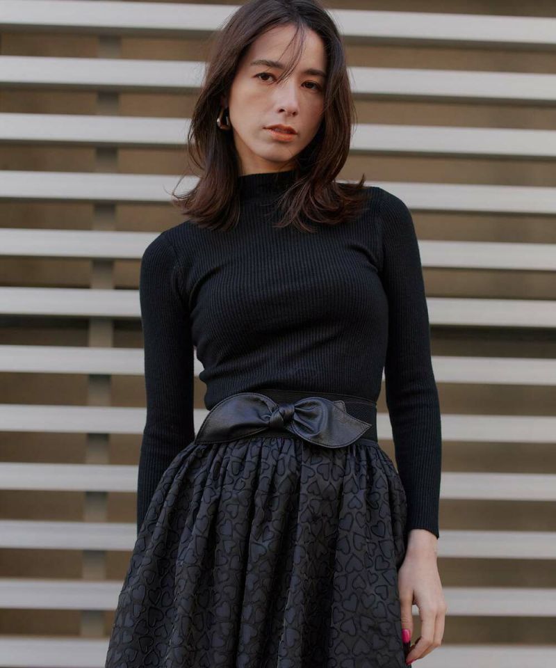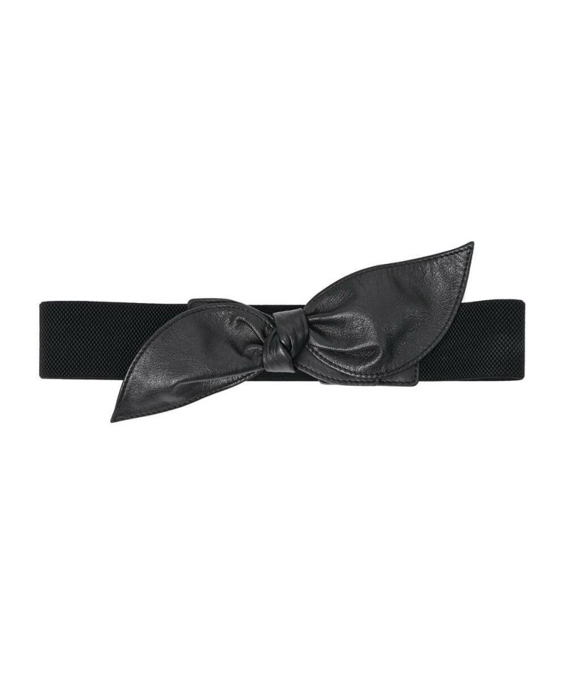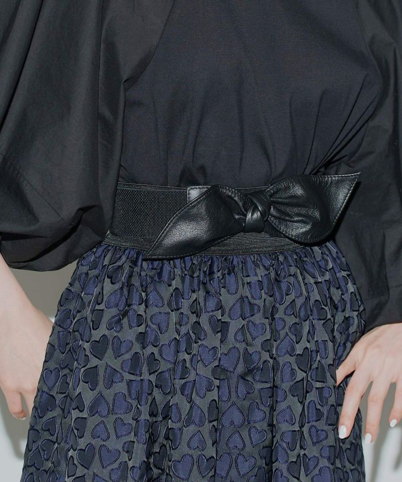 カウハイドレザーを使用したリボンベルト。強くなりがちなレザー素材に、リボンモチーフを取り入れることで可愛らしさをプラス。