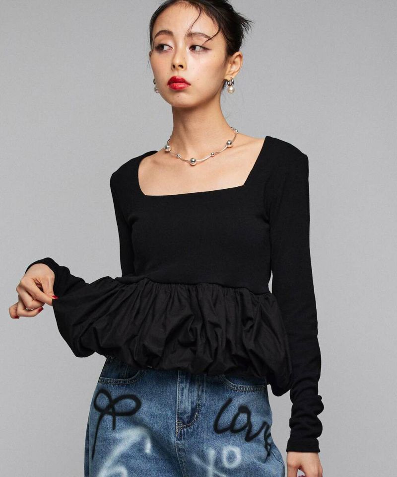 スクエア型に開いた首元でデコルテを美しく見せ、ヘルシーな肌見せに。裾に施されたバルーンが可愛らしいシルエットを印象付けつつ、体形をカバーを叶えてくれます。カジュアル度控えめなデザインで、ラフになりすぎずに女性らしさをキープ。【model】H165 B78 H83