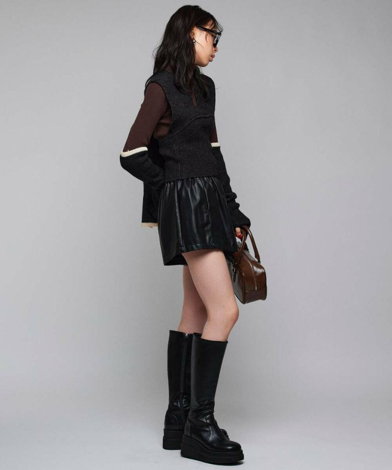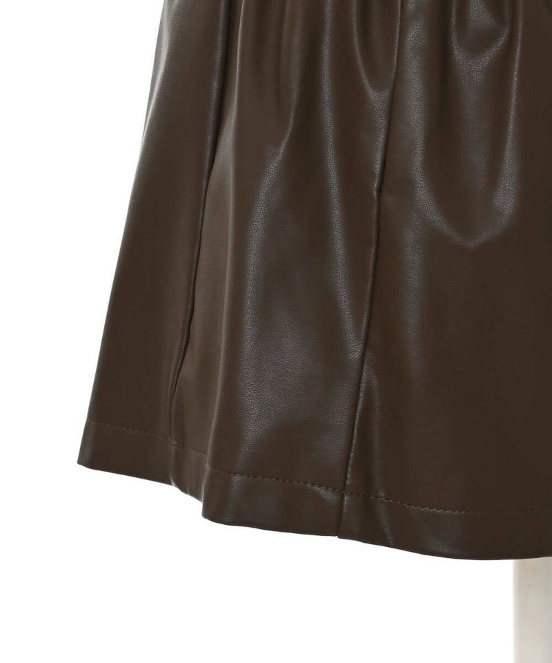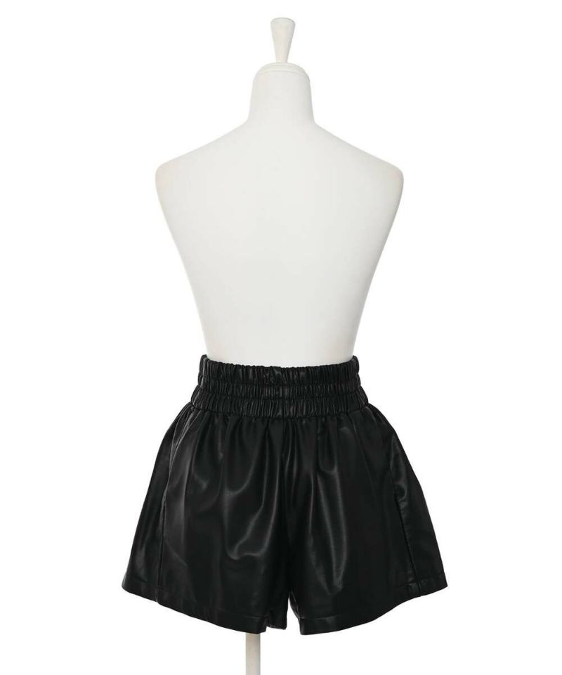 ベーシックなフェイクレザーショートパンツ。ウエストの幅広いゴムシャーリングがストレスフリーに着用。ゆとりのある広めの裾がスタイルアップ効果を。【model】:H165 B78 H83 / H163 B78 H84