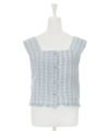 存在感があり、コーディネートに取り入れるだけで華やかさのあるツイード素材を使用したタンクトップ。フロントボタンで上品さをプラスし、デコルテを綺麗見せしてくれるスクエアネックがポイント。フレアスカートなどで綺麗めスタイルはもちろん、デニム合わせでカジュアルダウンさせたスタイリングもオススメ。【model】H160 B80 H85