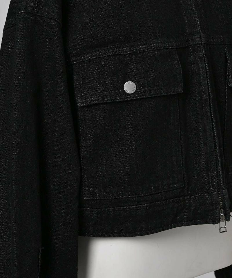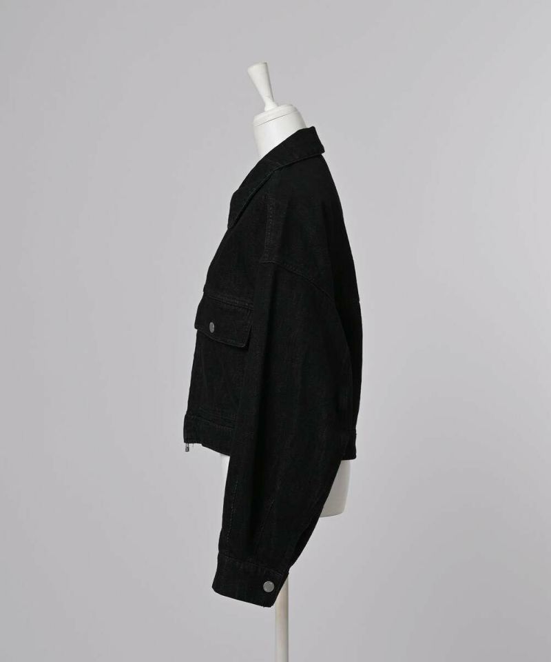 デニムジャケットはカジュアルなイメージが強いですが、程よい張り感と高級感のある生地を採用する事により、綺麗めなアイテムに仕上げる事ができました。やや着丈が短いボックスシルエットが特徴。裾サイドのタックボタンで丸みのあるフォルムへと調整が可能。アレンジ次第で幅広いボトムに合う着回し力の高さも嬉しいポイント。ダブルジップ仕様でバランスも取りやすく、お好みのスタイルで開閉ができるので幅広いコーディネートをお楽しみいただけます。※この商品は多少色落ちする場合がありますのでご注意くださいませ。濡れた状態での放置もお避け下さい。お洗濯の際は単品洗いをおすすめします。【model】H160 B80 H85