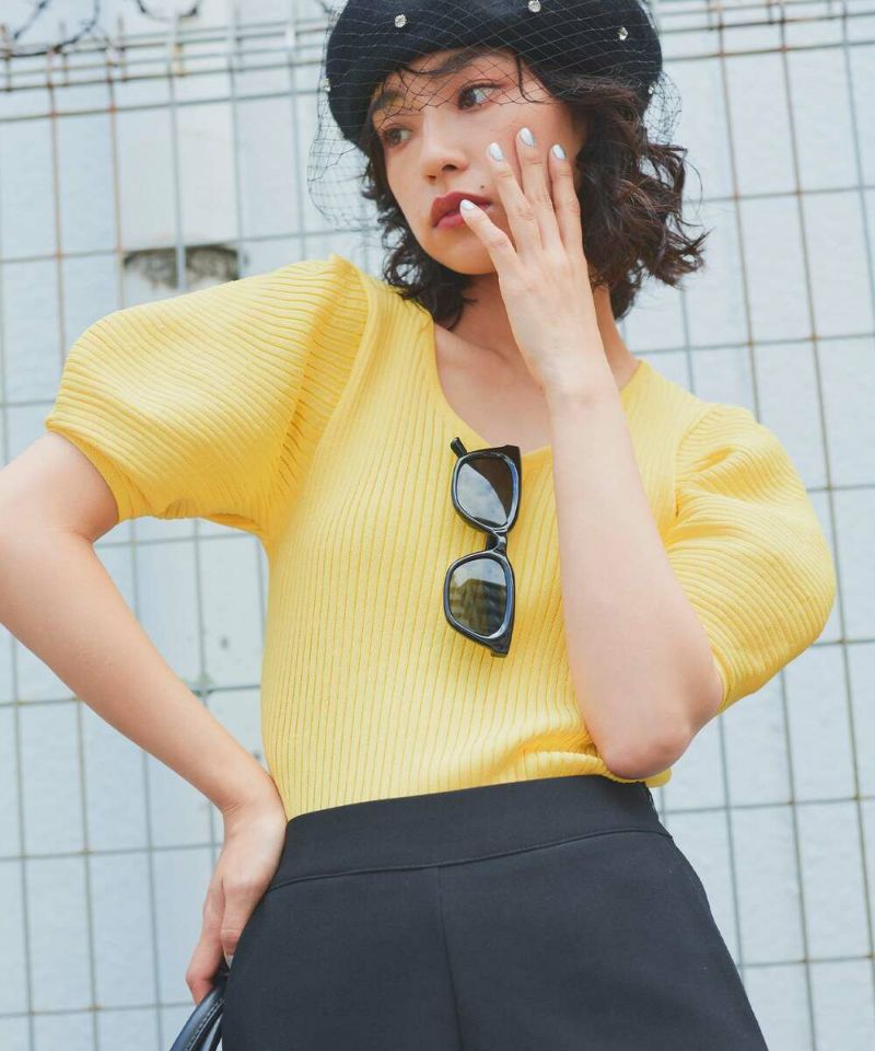 ボリュームのあるパフスリーブが印象的なニットトップス。Vネックデザインで華奢見えし、抜け感をプラス。カジュアルから綺麗めまで着回しできるシンプルなデザインで、一枚持っておくだけと重宝するアイテム。 【model】:H165 B78 H83 / H163 B78 H84/H160 B80 H85