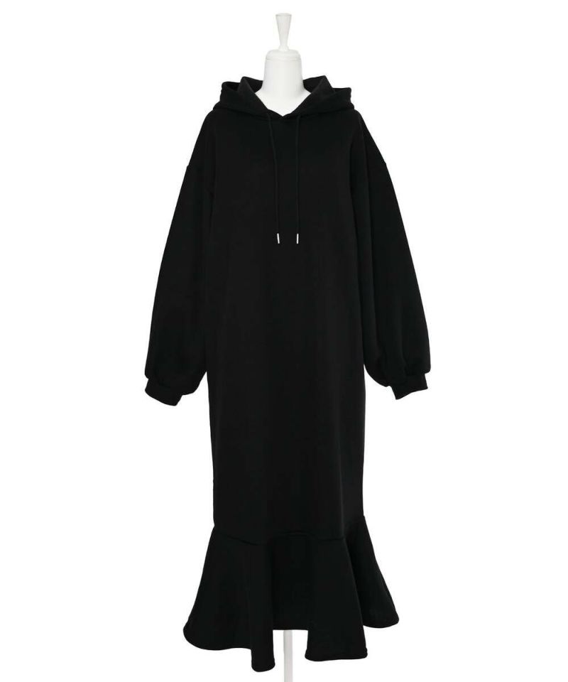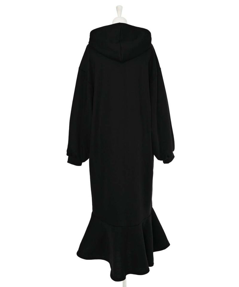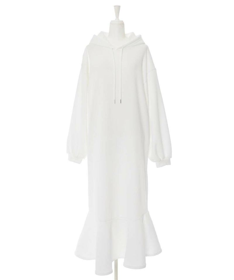 大人可愛い印象を与えるマーメイドシルエットのワンピースに、フードをプラスしてカジュアルダウンさせたアイテム。ゆったりとしたオーバーサイズで抜け感も演出。裏起毛で保温性がありながらも、少し薄めの素材感なので着膨れせずにアウターが羽織れるのも嬉しいポイント。【model】H163 B78 H84