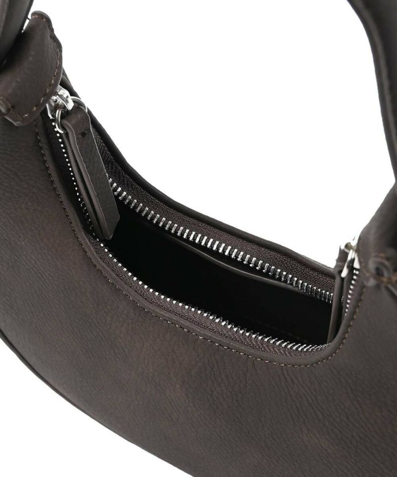 暖かみと高級感のあるスエード生地に、コロンとした形が可愛らしいミニバッグ。ハンドバッグとしてはもちろん、ハンド部分の長さ調節可能なのでワンショルダーとしても使用できるデザインがお洒落。