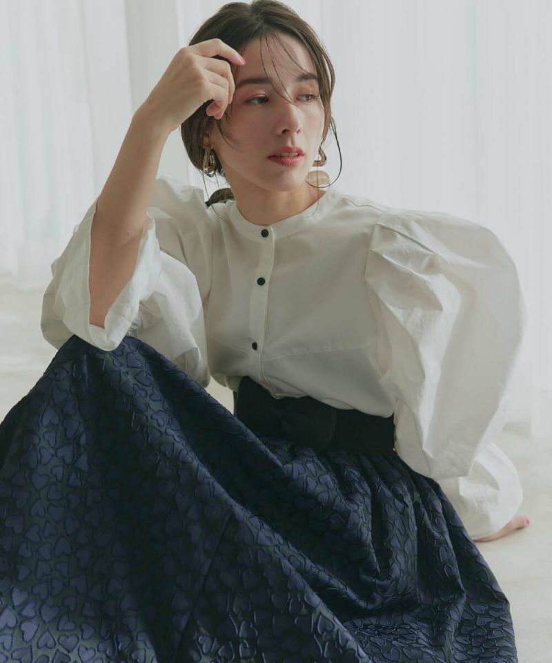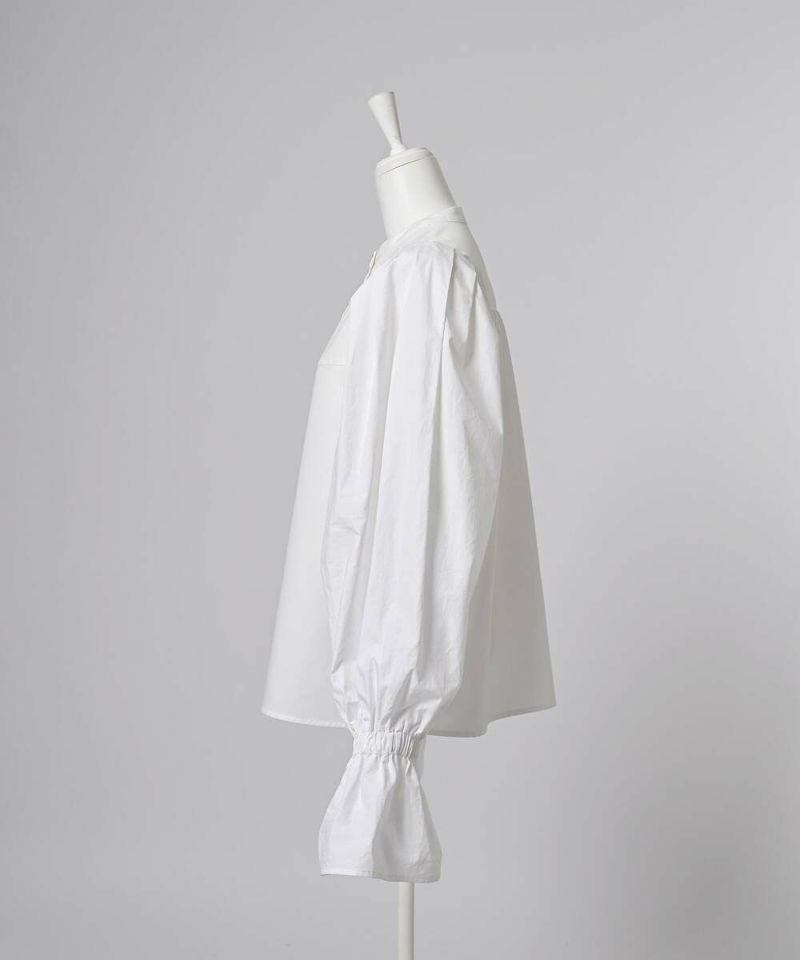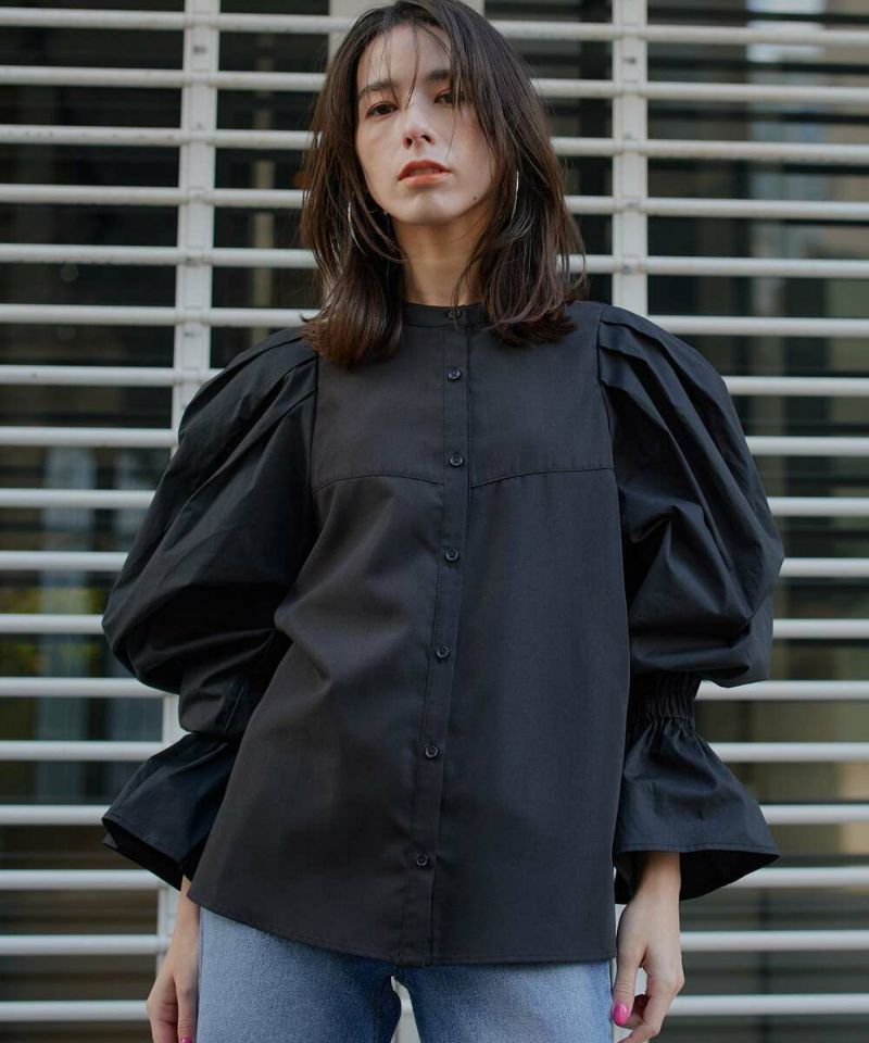 肩を覆うようにタックを施したボリュームたっぷりのスリーブデザインが魅力のブラウス。袖には軽やかでありながらシルエットをキープする素材を採用し、身頃にはふわりと揺れながらボディラインをひろわないライトな着心地の素材を採用することで、異素材をドッキングさせた理想の着心地が叶うアイテム。袖口のゴム切り替えでふわっと広がるカフスは、長袖・七分丈・半袖と袖丈を自由に調整でき、ロングシーズン着用可能。ノーカラーの上品なシルエットとのバランスを取ることで一枚ではもちろん、オールインワン・ワンピース・ベストなどのレイヤードスタイルにも取り入れやすい着回しの効くアイテムに。普段使いからオケージョンまで幅広いシーンで着用できます。【model】H160 B80 H85