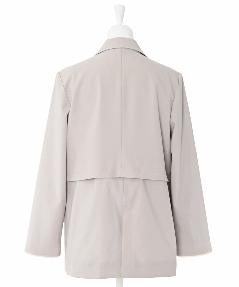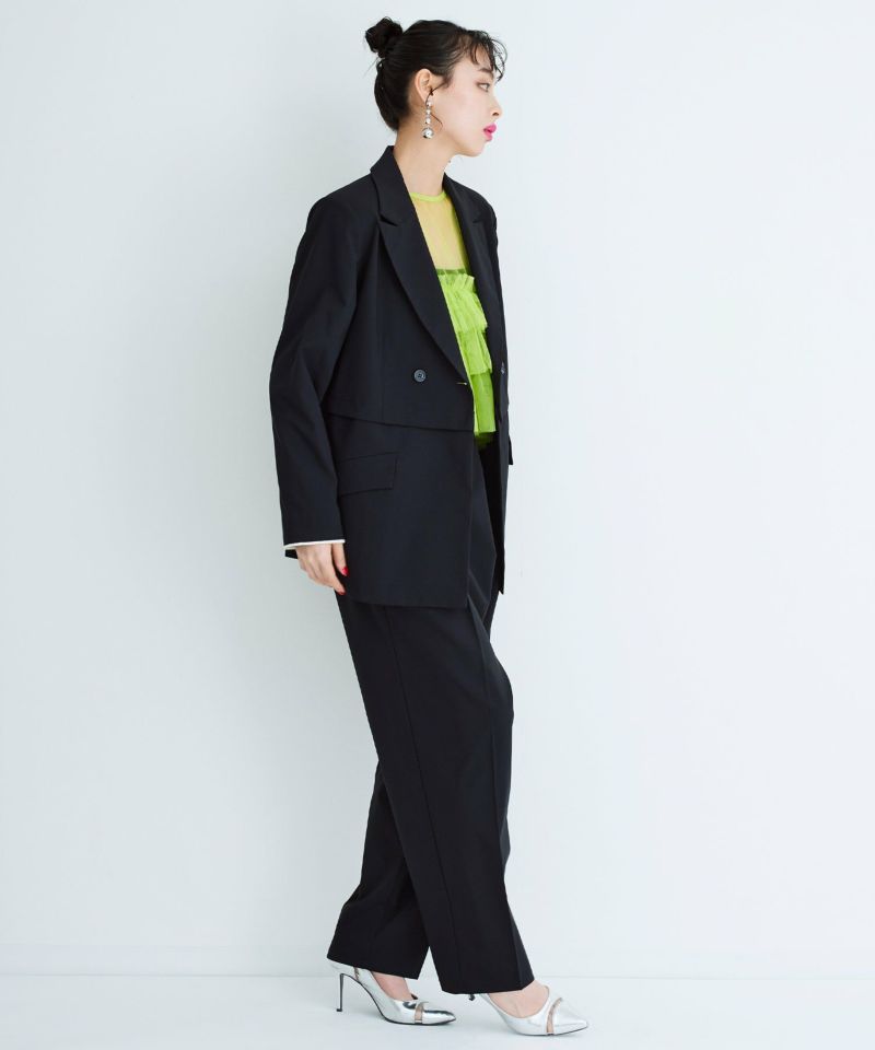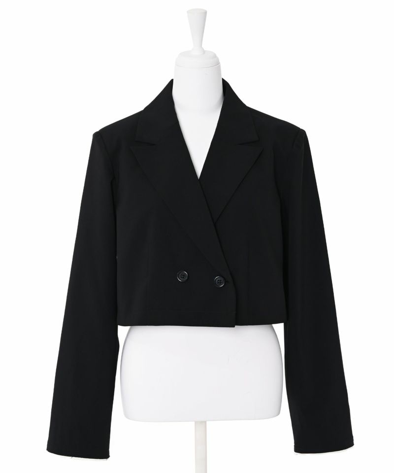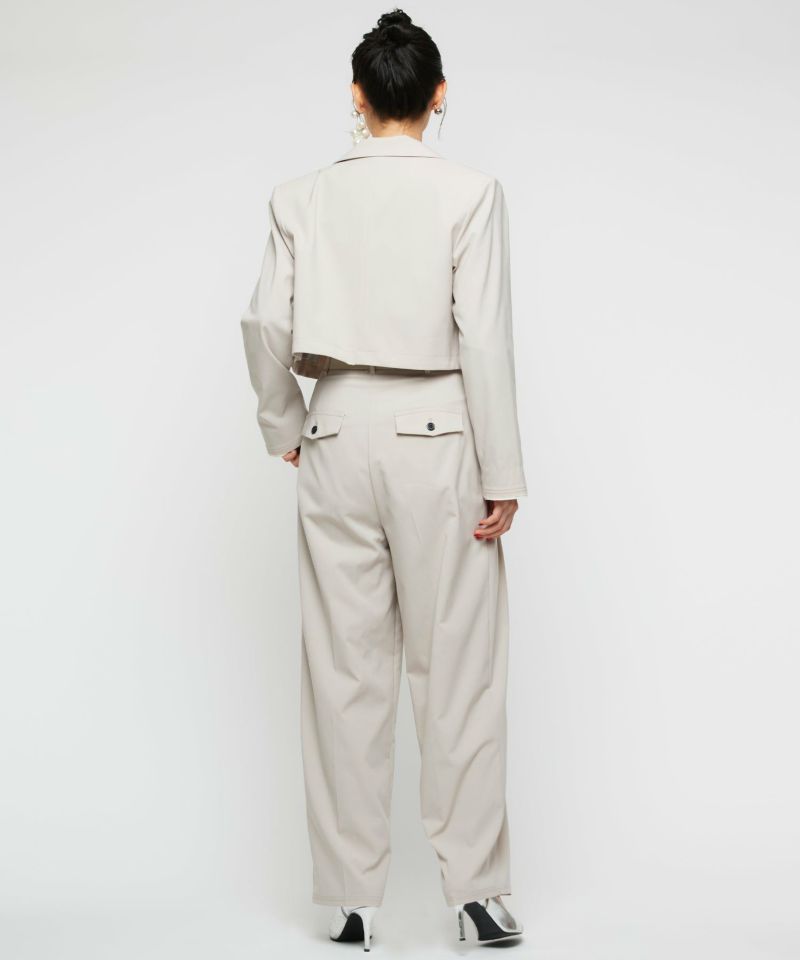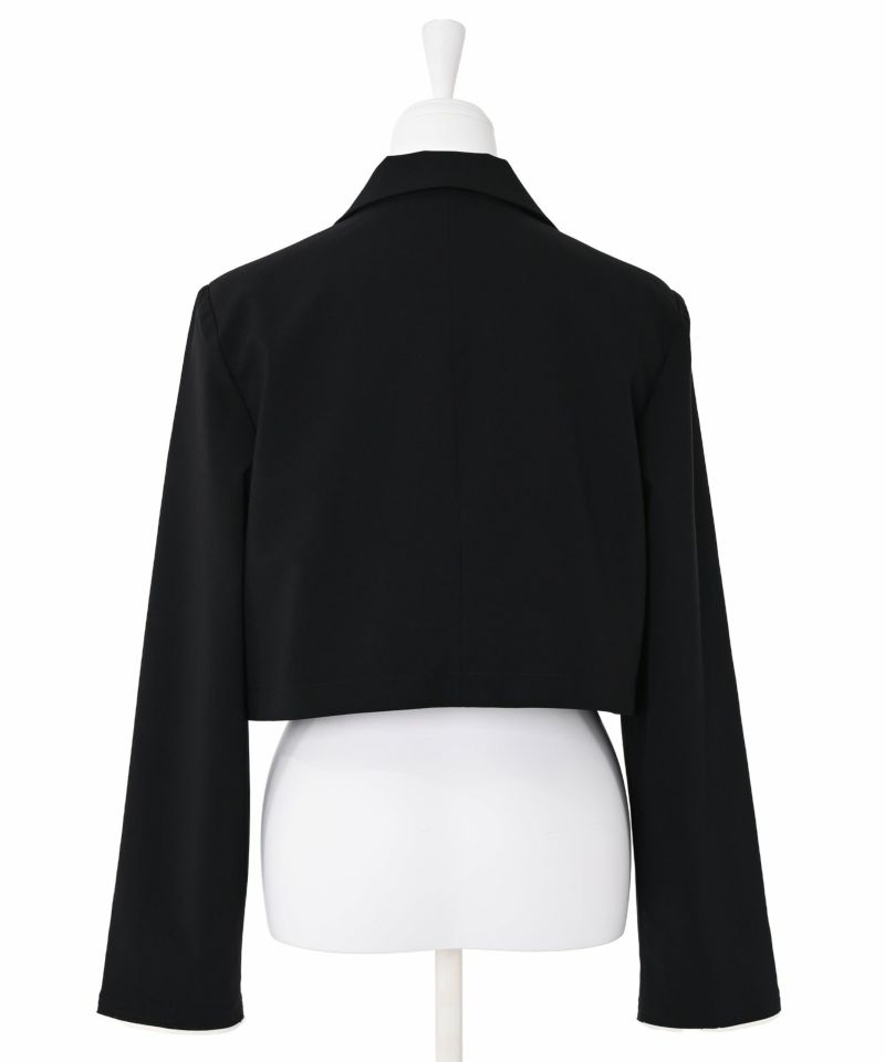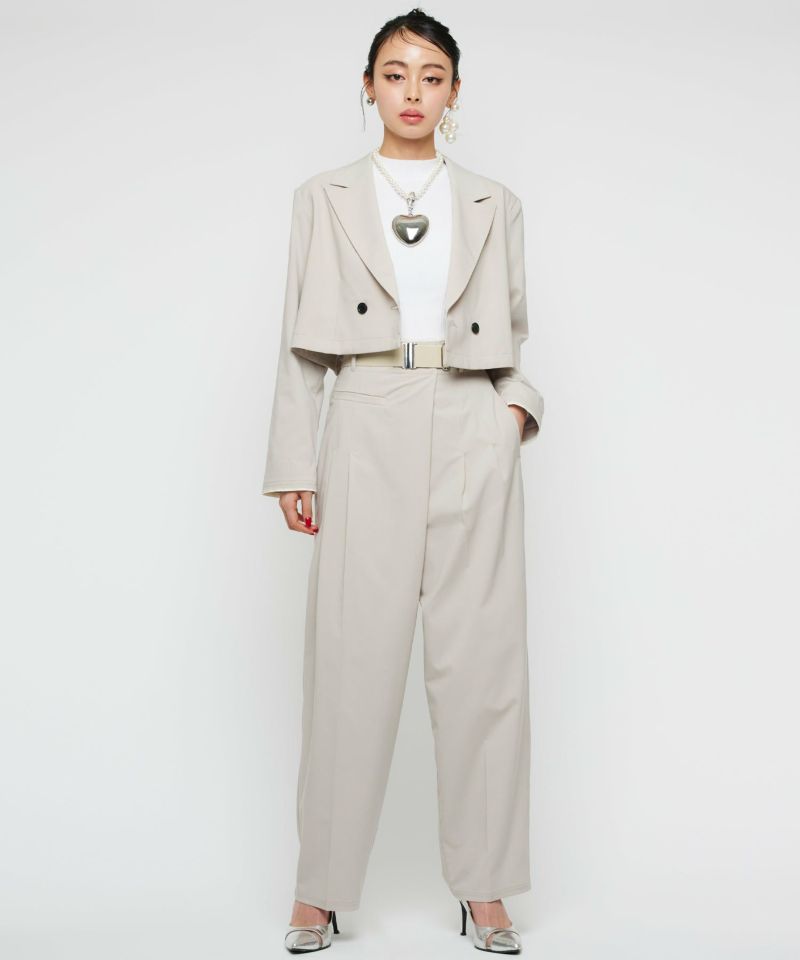 ボタンの取り外しで、ロング丈とショート丈の2WAY仕様で着用可能なテーラードジャケット。型崩れしにくい薄めの肩パッドが入っており、オケージョンスタイルはもちろん、普段使いもしやすい着回しの効くアイテム。国産の同素材を使用したベルトパンツとセットアップコーディネートがオススメ。【model】H165 B78 H83