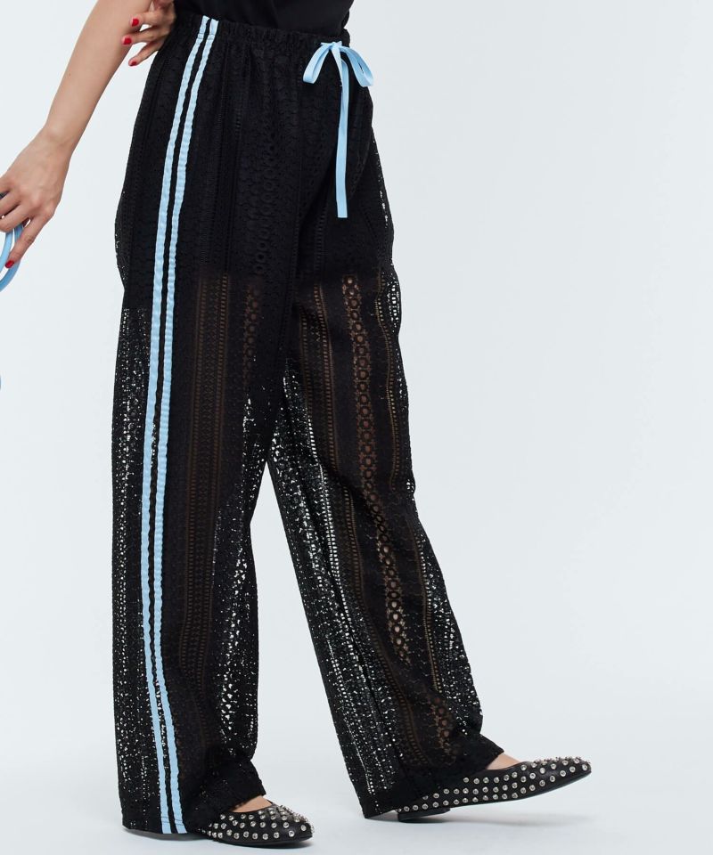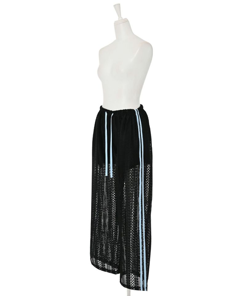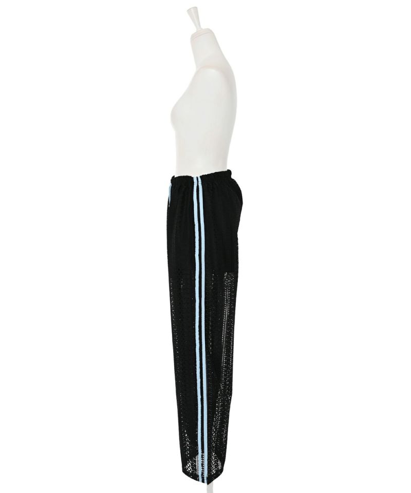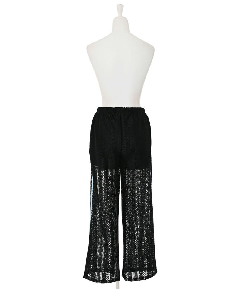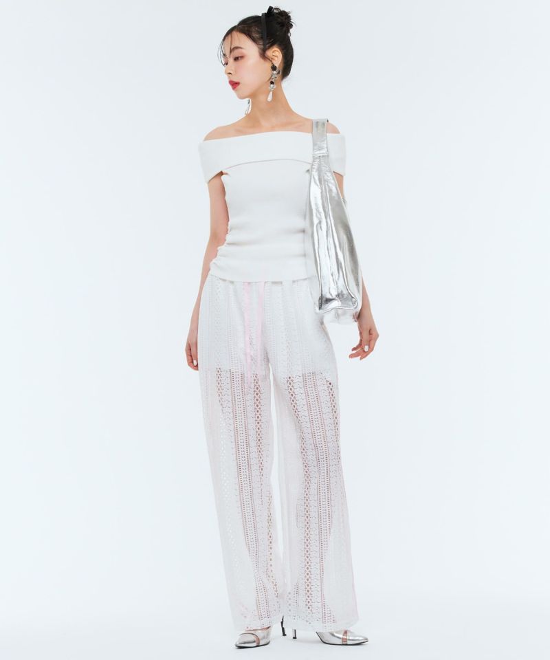 透け感のあるレース素材が女性らしさを引き立てる、ワイドパンツにラインデザインを落とし込んだアイテム。シーズンライクな可愛らしい配色もポイント。【model】H165 B78 H83 / H163 B78 H84