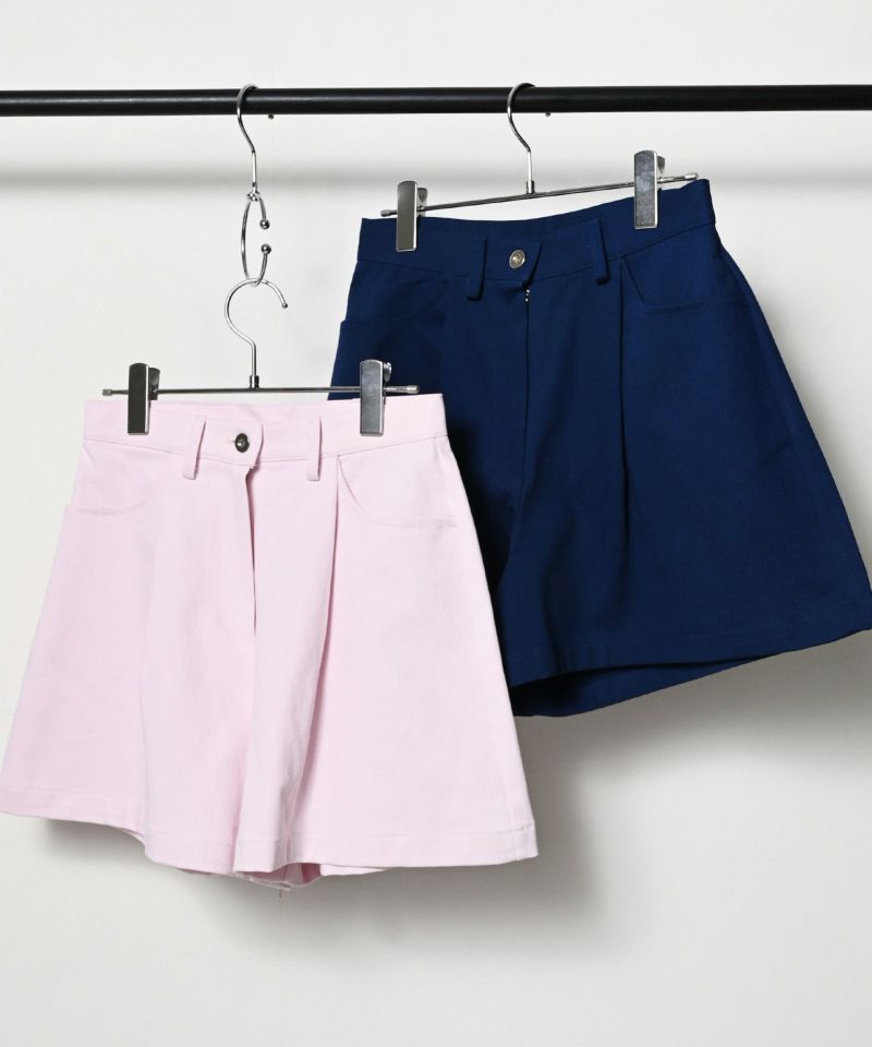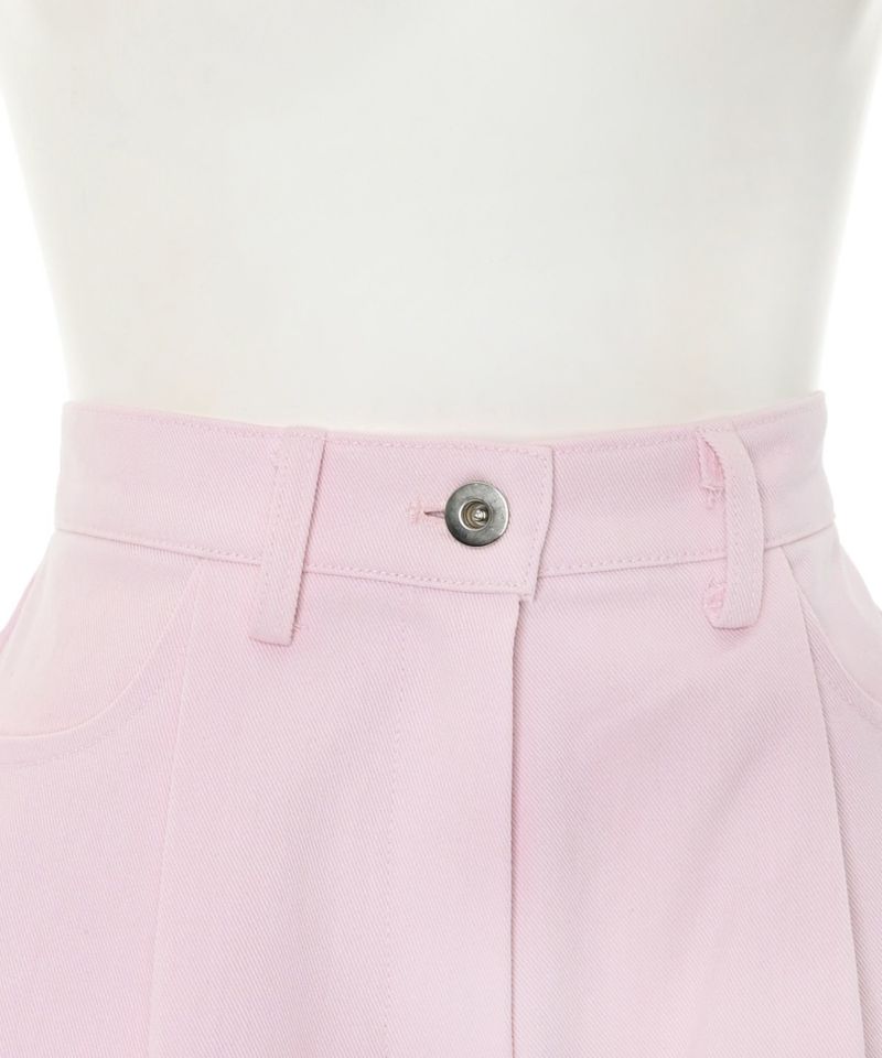 シンプルながらもフロント部分にタックが入っていることにより、パンツのシルエットが綺麗見えし、肌馴染みの良いカラーを採用していることで着まわしの効くアイテムに。裾に向かって広がるデザインが、気になる太もも部分を細見えさせてくれます。