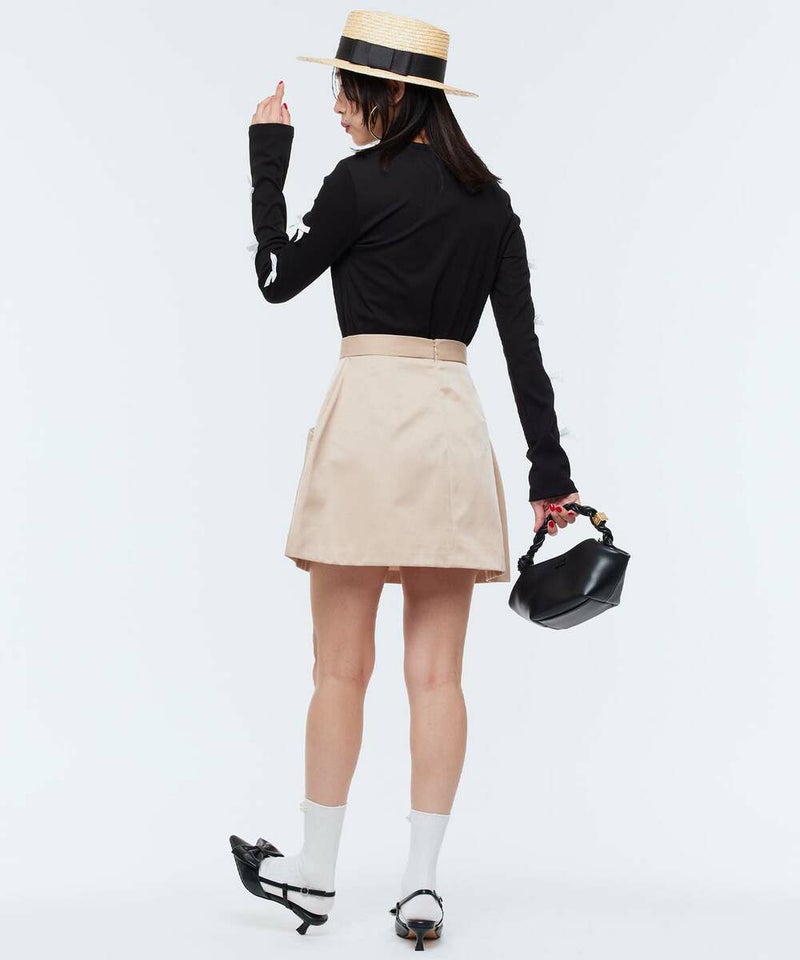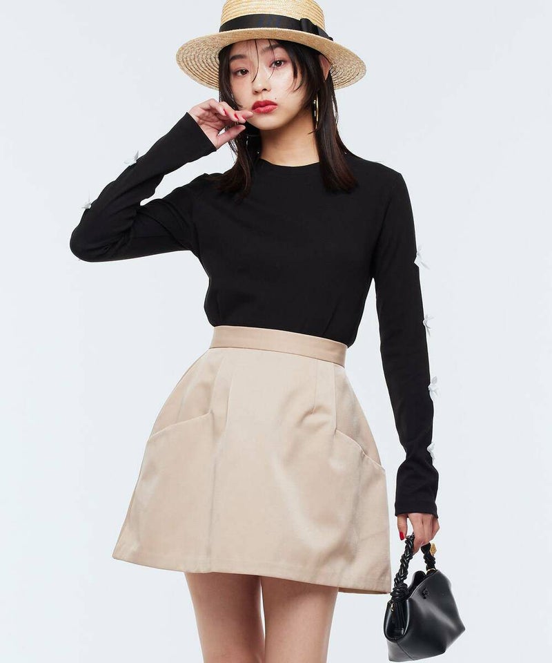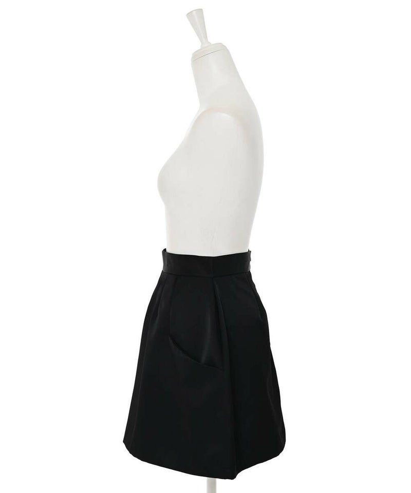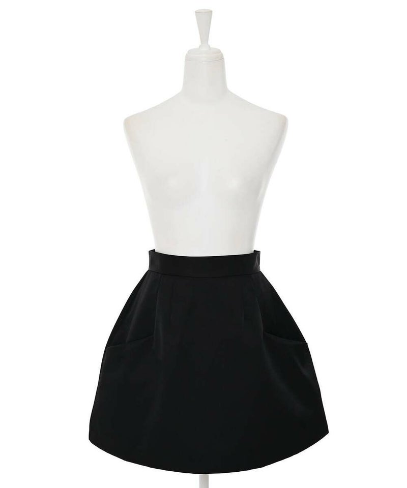 コクーンシルエットがモードな印象のミニスカート。シンプルなデザインながら、フロントのポケット口が立体的なのがワンポイントに。程良いハリ感のある素材でオールシーズン着用可能。