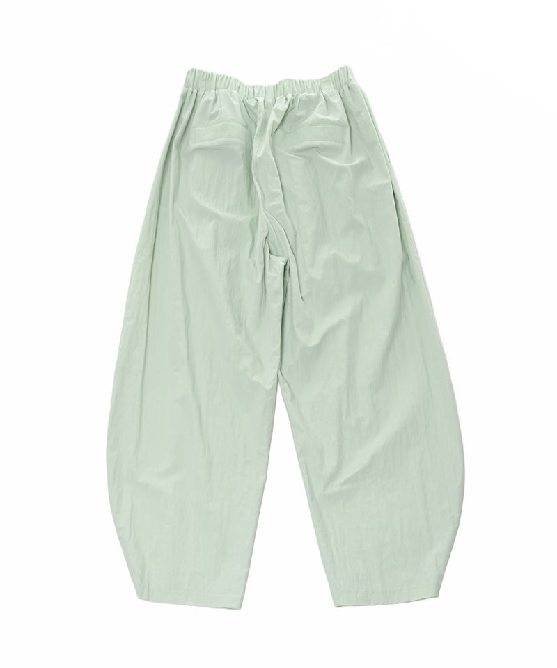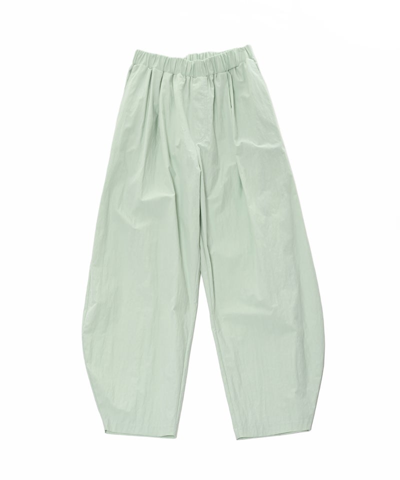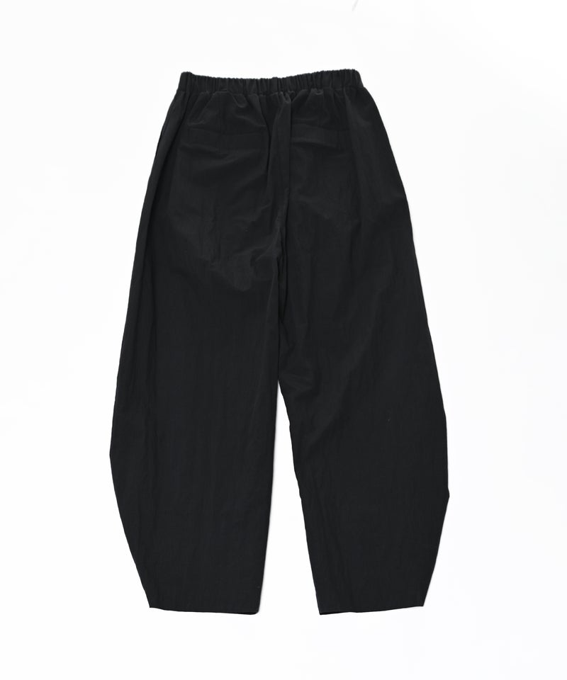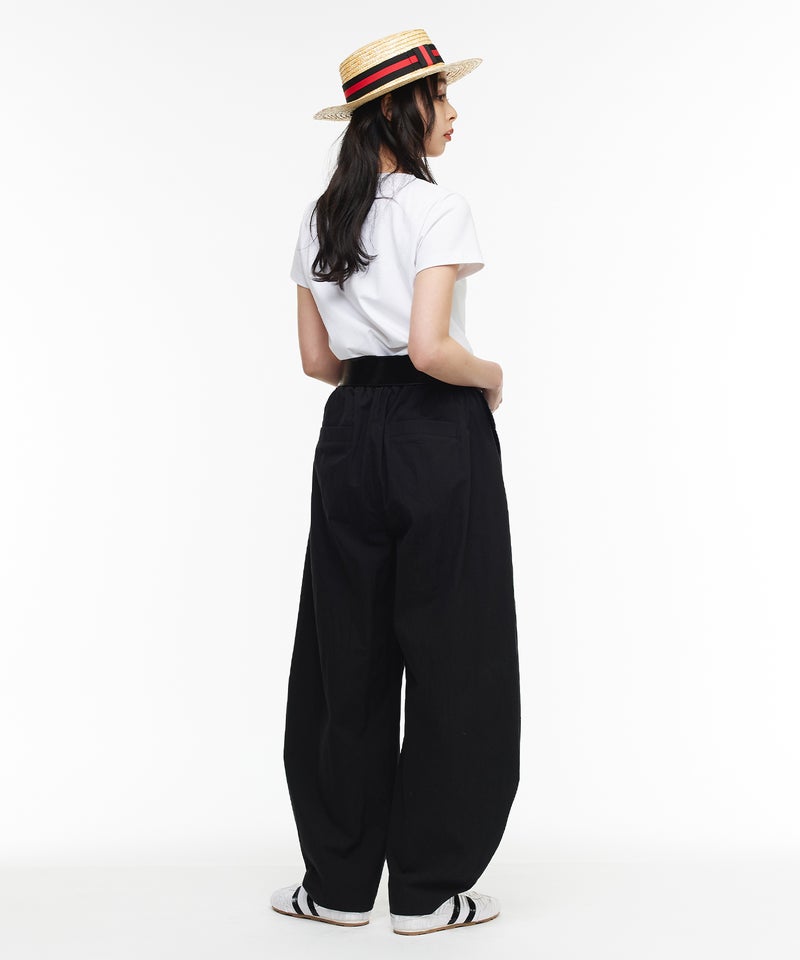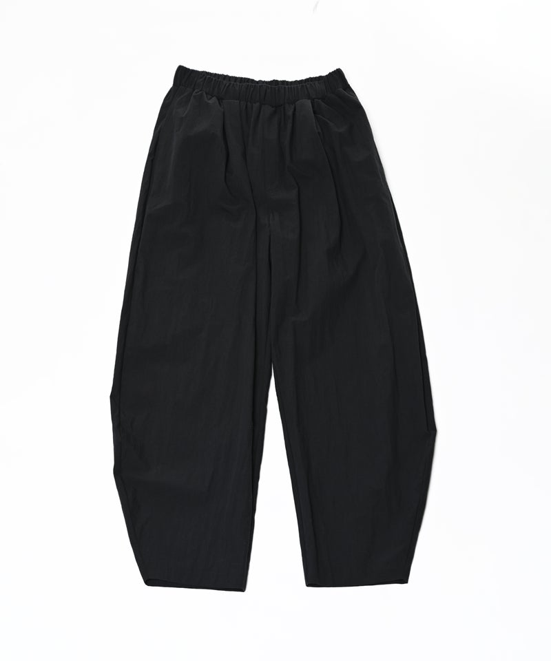 ゆったりとしたワイドシルエットに、丸みのあるフォルムが特徴的なデザイン。 裾にかけて自然にボリュームが出ることで、立体感のあるシルエットを演出します。 ウエストはすっきりとした仕様で、トップスインもバランスよく決まるのがポイント。 シンプルな中にさりげないデザイン性が光り、ラフすぎず洗練された印象に仕上がります。