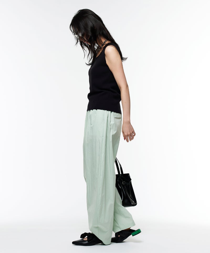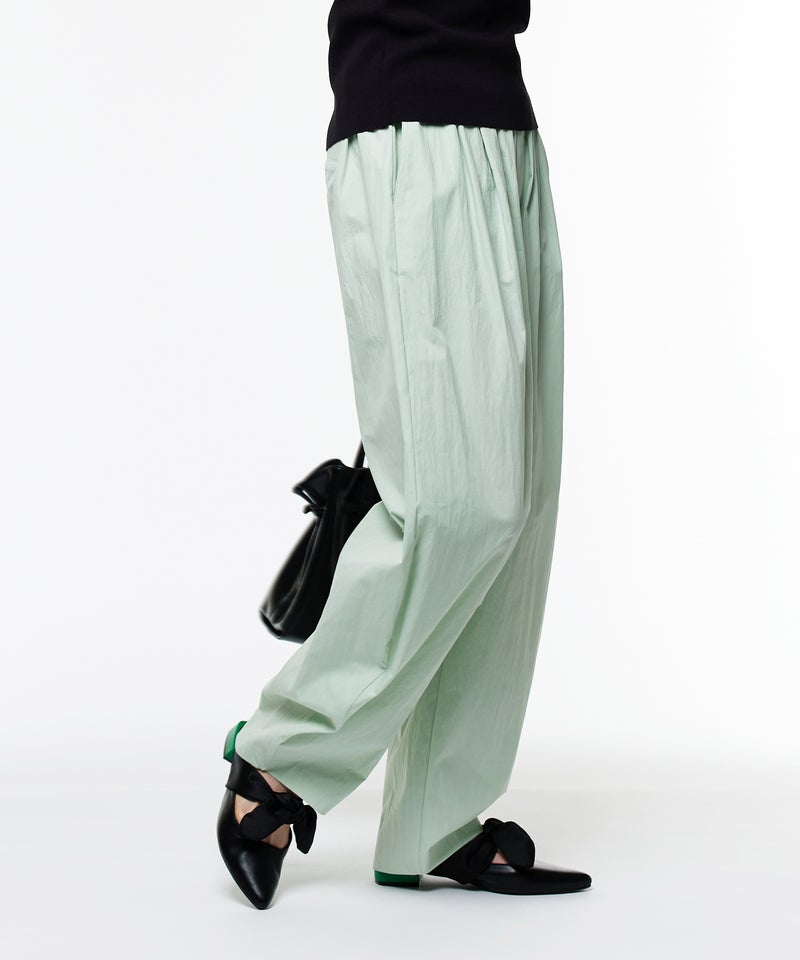 軽やかでハリ感のある素材を使用し、シルエットを美しくキープ。 程よいボリューム感がありながらも、快適な履き心地を叶えます。