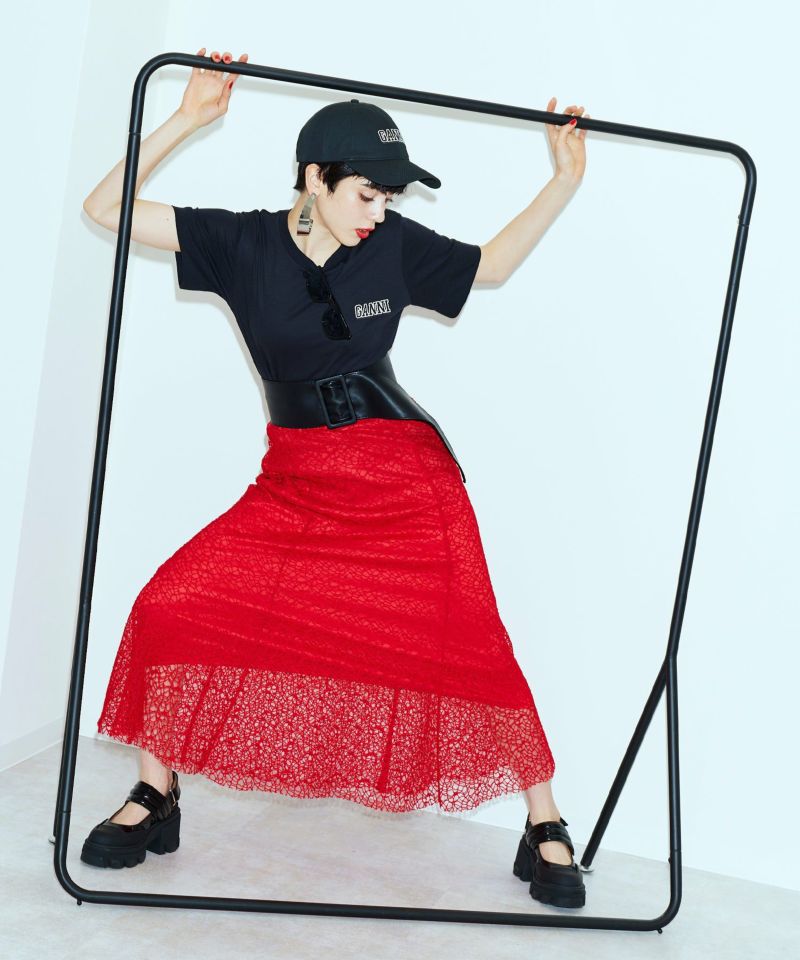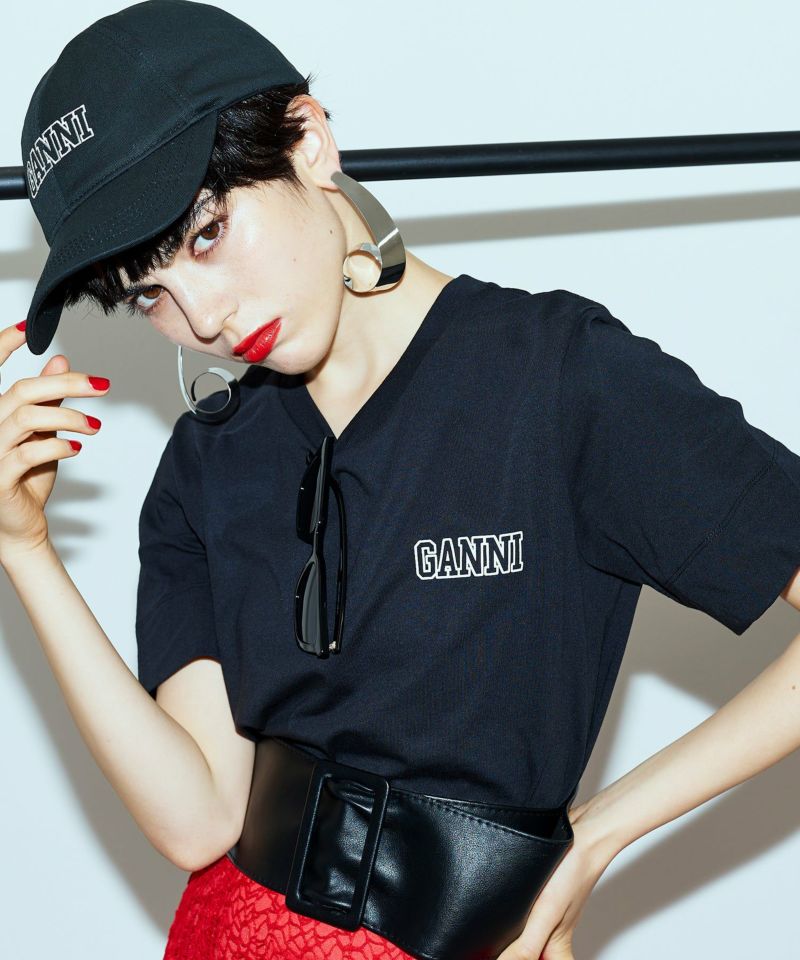 デンマーク発のブランド GANNIは、「サステナブル」と「ファッション」には相容れないものがあるという心構えから、あえてサステナブルファッションブランドとは名乗らず、ファッションの世界に身を置きながら、状況を変えてポジティブな影響をもたらそうと奮闘している。 取り組みを通じて変化を追求し、画期的な新素材やアップサイクルの生地を積極的に取り入れつつ、デザイン性が高く一生着られる服づくりに挑戦。モデル身長:158cm着用サイズ:XS