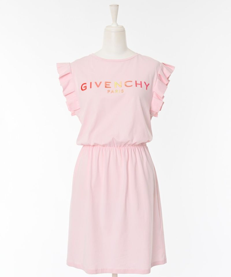 【ポイント】 ・レインボー刺繍ロゴ・ウエストゴム入り・袖フリルが二の腕をカバー 【GIVENCHY】 ジバンシィは、1952年にフランスにて設立。現在では服飾、装飾品だけでなくコスメラインも展開している。古くはオードリー・ヘップバーンなどが着用し、世界的な流行の最先端を担ってきました。様々な歴史を経てきたものの、古きよきデザインは健在。正統派フレンチファッションを代表する世界的ブランド。コンセプトは「エレガンス」であり、上品で洗練されたスタイルが特徴。
