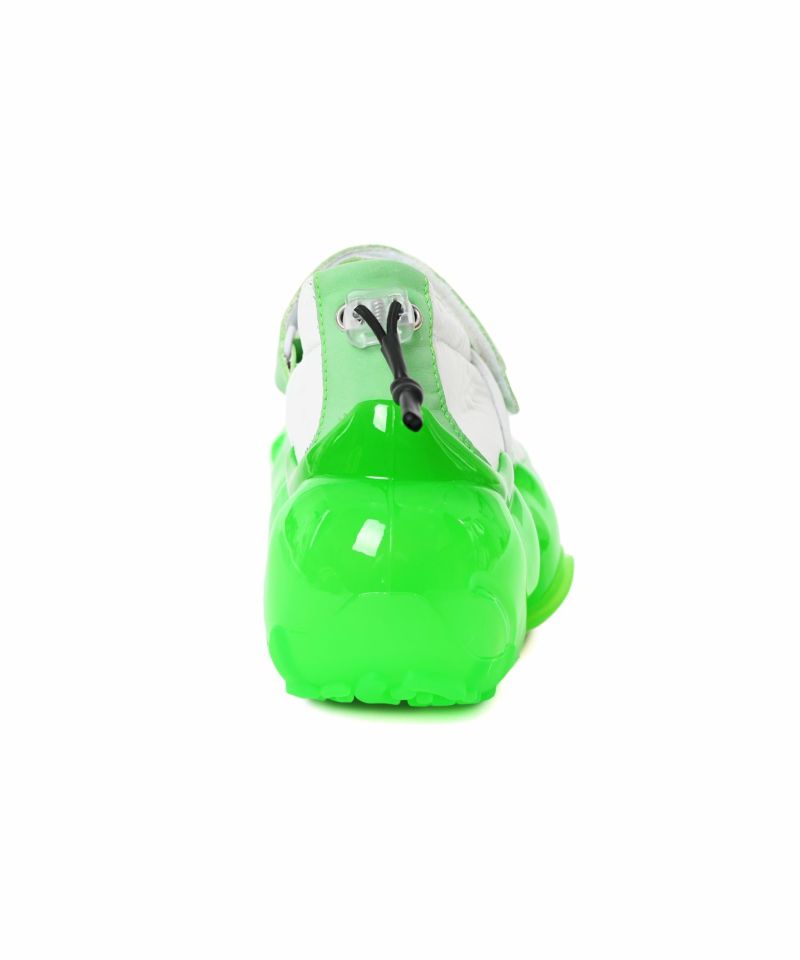グラウンズ(grounds)は、日本のシューズブランド。ミキオサカベのデザイナー・坂部三樹郎がディレクターによるギディーアップ(GIDDY UP)は前身ブランド。2019年に改名し、グラウンズとなった。 コンセプトに”LEAP GRAVITY”を掲げ、 「人間と重力(地球)の関係に変化をもたらすこと」「人間と重力(地球)の接点であるアウトソールと地面を中心とした人間像作り」をテーマに、特徴的な立体ソールのシューズをデザインしている。アッパーはボリュームのある靴底とは対照的に華奢な仕上がりに。コードストッパーでサイズの調整可能。※※ご覧のモニター環境や撮影環境により実際の商品と多少色味が異なって見える場合がございます、ご理解の程を宜しくお願い致します。 カラーは、ネオンのお色味になっております。