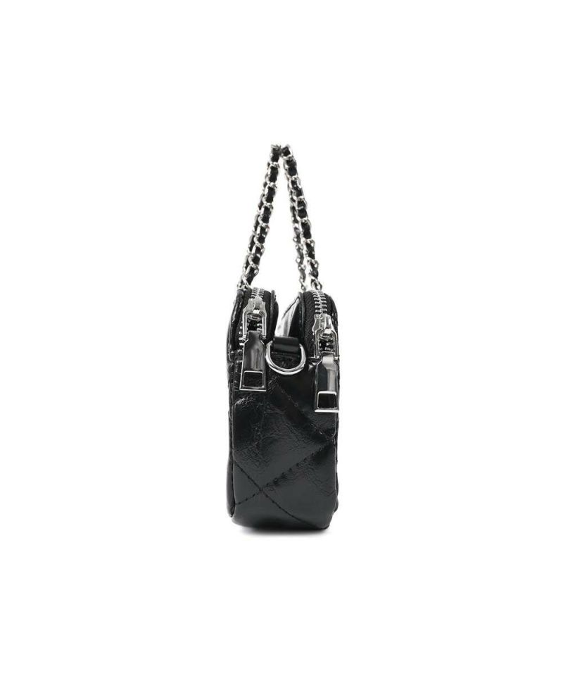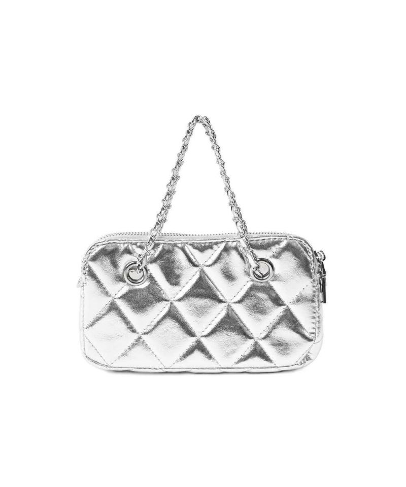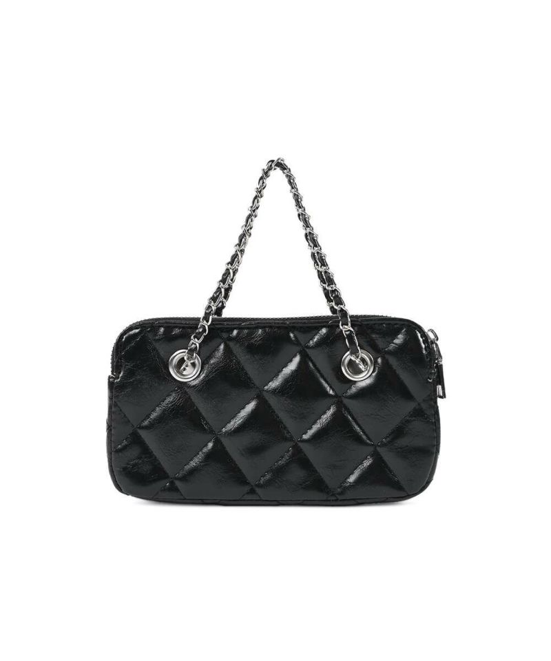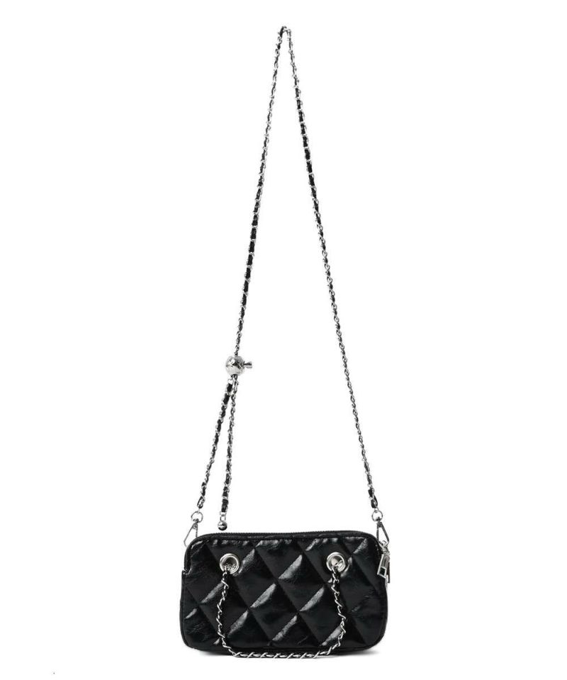 ポシェットを2つ合わせた仕様で、小物の仕分けが便利なキルティングミニバッグ。