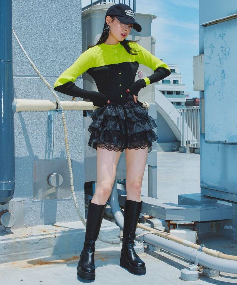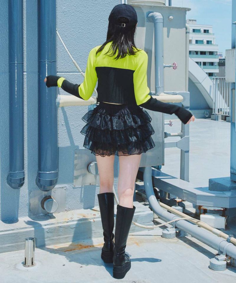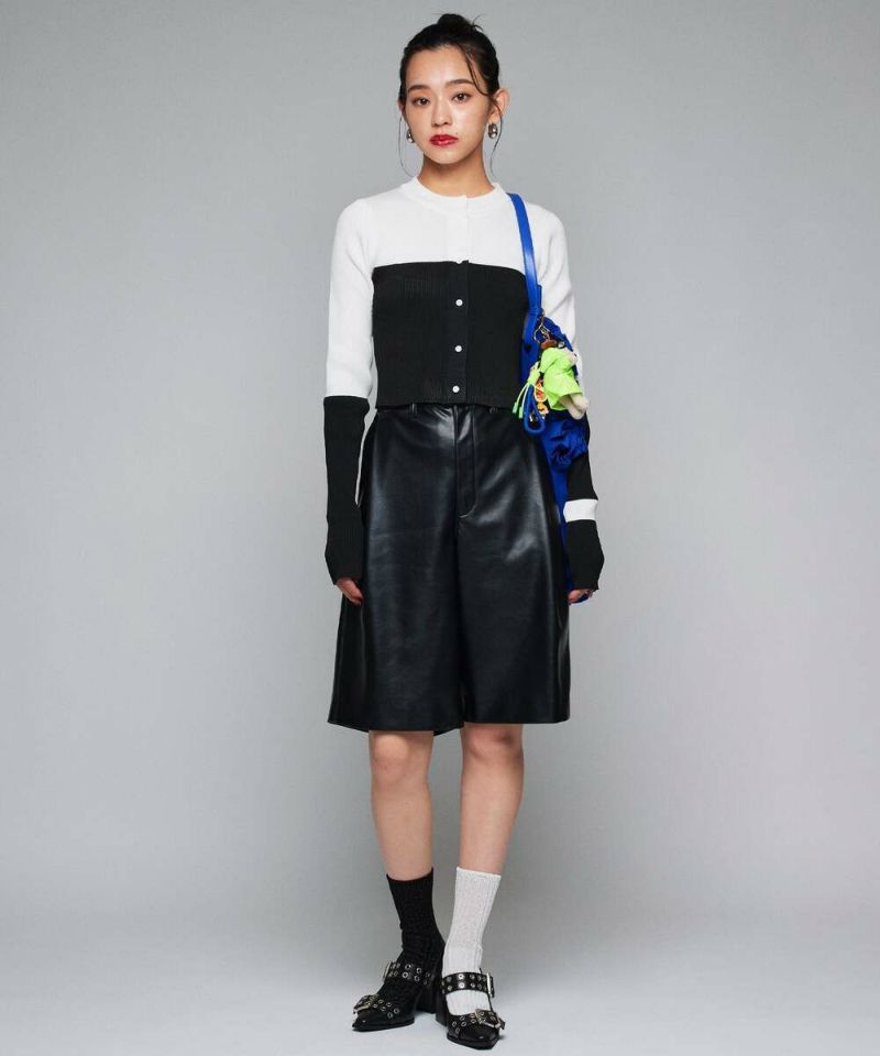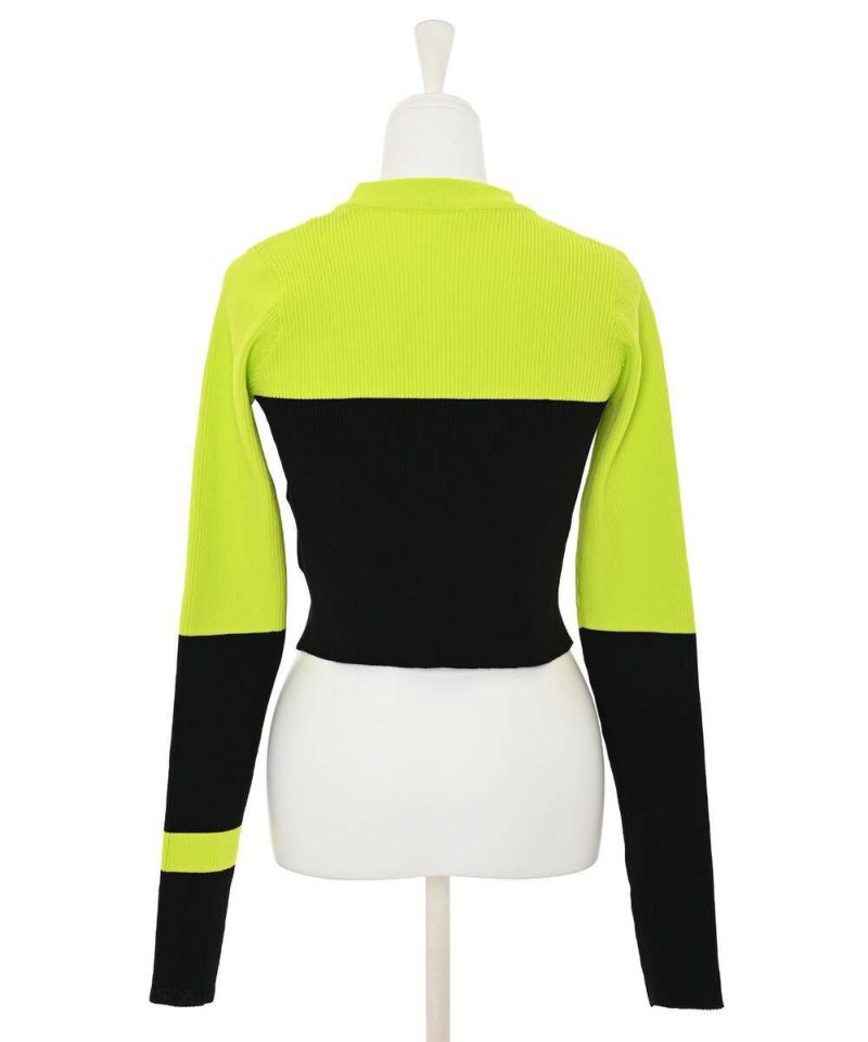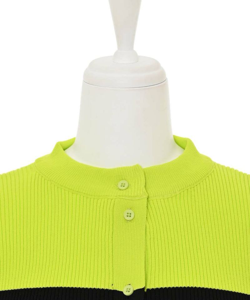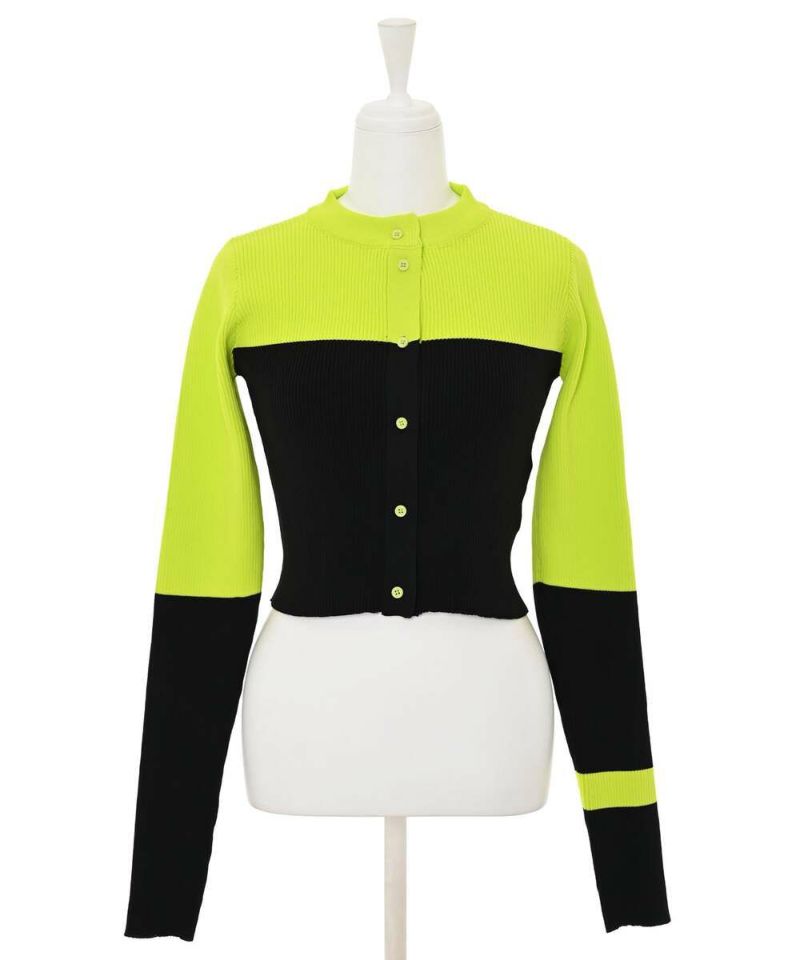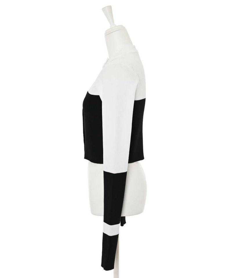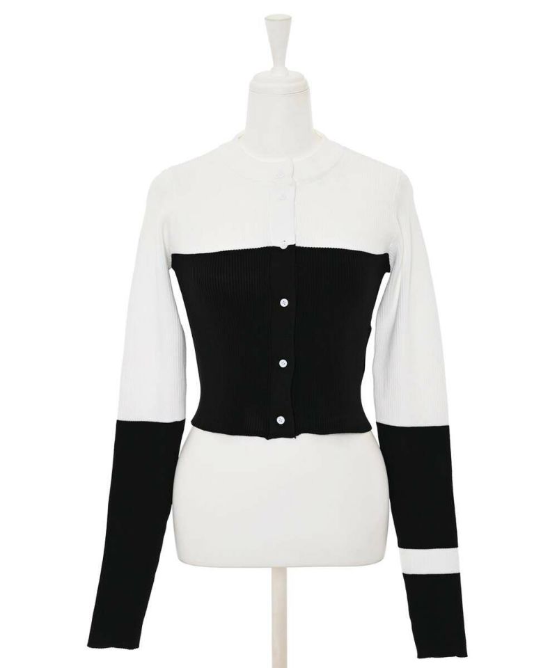 バイカラーの配色が目を惹く一枚。様々なボトムスとバランスよくスタイリングしやすい丈感に拘りました。ビスチェをレイヤードしたような切り替えデザインや、袖口のラインなど細かい部分に遊び心をプラス。ボディラインにフィットするサイジングで、伸縮性があり肌触りの良いニット糸を採用することで、リラックスした着心地を叶えました。ボタンの開閉可能なのでインナーにキャミソールを入れて羽織として着用するのもオススメ。 【model】:H165 B78 H83 / H163 B78 H84