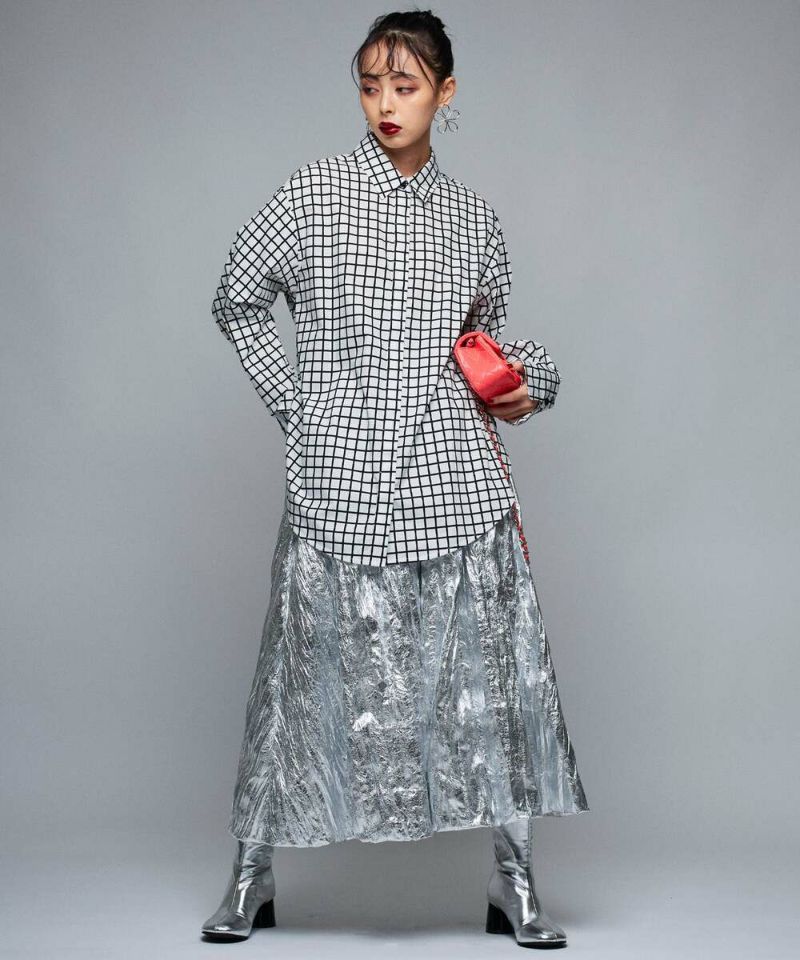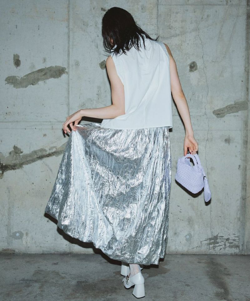 Narcissus人気アイテムのバルーンデザインに、メタリック素材が登場。女性らしいバルーンデザインに、メタリック素材を採用することでモード感をプラス。ベーシックなトップスとスタイリングするだけで、一気にお洒落上級者に。重くなりがちな秋冬に大活躍し、オールシーズンを通してコーディネートのポイントとなります。楽に着脱できるよう総ゴムを使用。 【model】H160 B80 H85/H165 B78 H83
