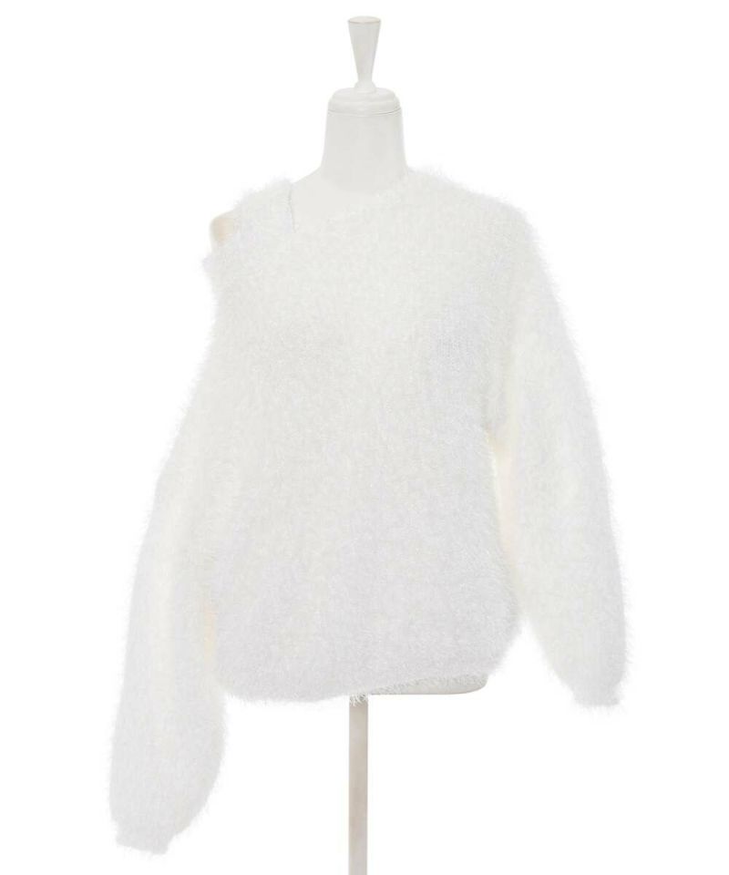 軽くてふわふわした毛並みが、季節感漂うニット。ワンショルダーの開きデザインが程良く肌見せでき、ホリデーシーズンにぴったり。とろみのあるゆったりとしたシルエットで、オン・オフ問わず活躍してくれるワードローブに揃えておきたいおすすめアイテム。【model】H163 B78 H84