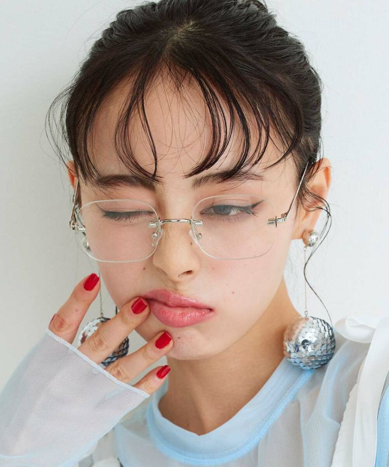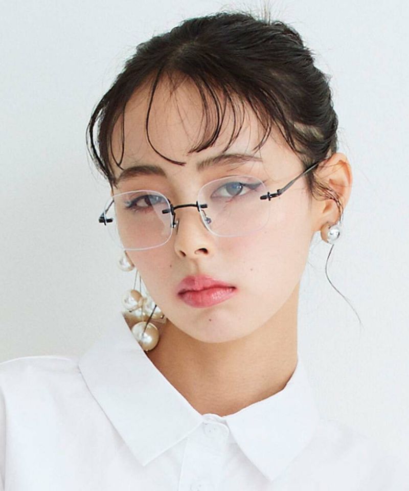 フレームがないことで、素顔に近く知的で洗練された印象に。