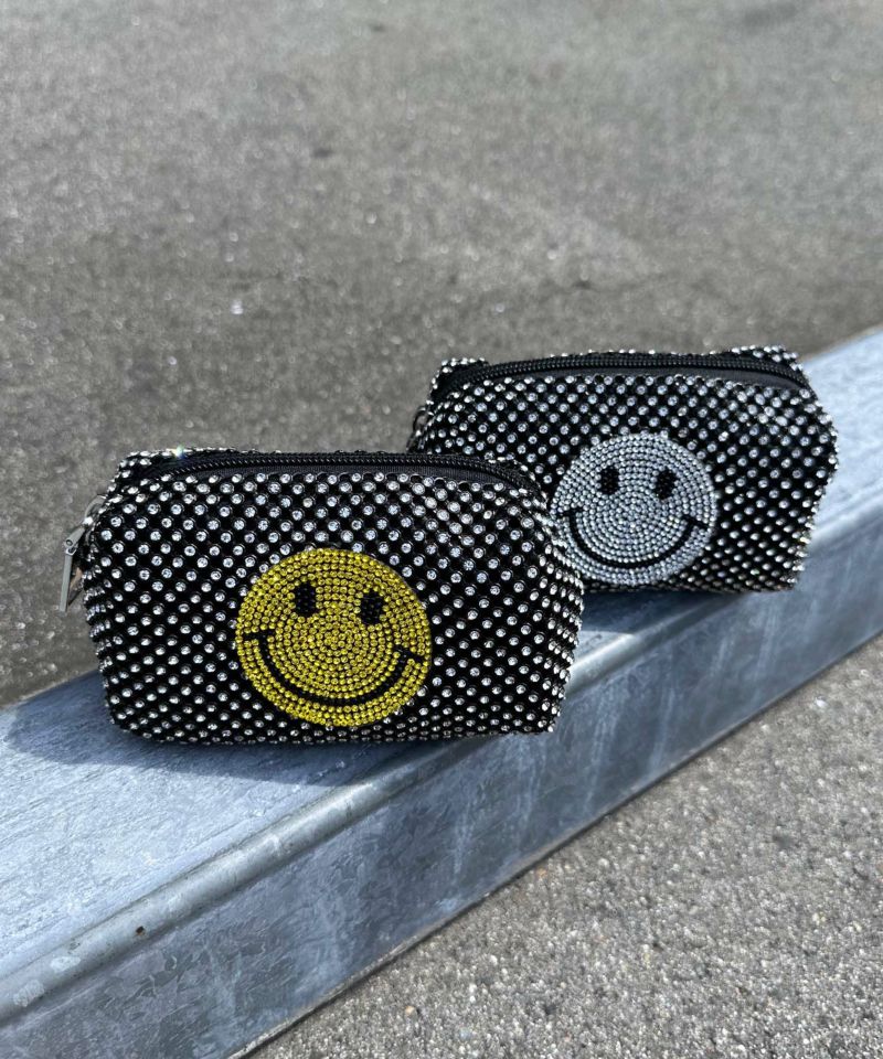 フロント部分のスマイルモチーフが可愛らしいポーチ。お持ちのバッグに入れたり、持ち運びししやすいサイズ感。取っ手が取り外しできるのも嬉しいポイント◎