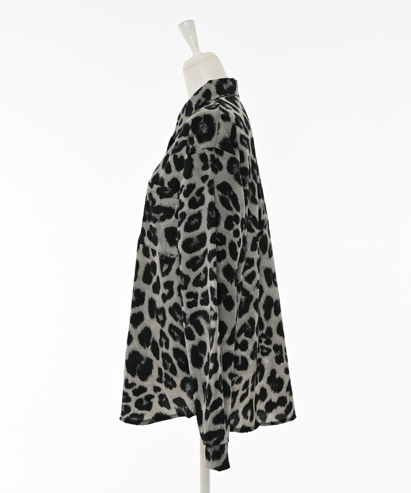全体的にレオパード柄を施すも、モノトーンよりの落ち着いたカラーにすることで派手になりすぎず、大人っぽく着こなせるアイテム。シャツ自体はゆったりとしたシルエットを採用しており、大人っぽさを演出しつつ、抜け感をプラスします。また、一枚で存在感が出るだけでなく、インナーや羽織としても活躍します。
