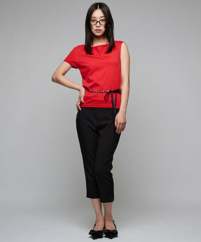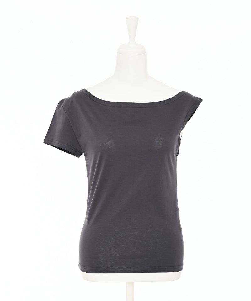 左右の袖がアシンメトリーになったTシャツ。ボディラインにフィットするシルエットで、伸縮性のある薄手の素材が風通しも良く着心地◎シルエットにはデザイン性がありますが、ベーシックな無地Tシャツなので様々なボトムスと合わせやすい着回し力抜群のアイテム。【model】H163 B78 H84