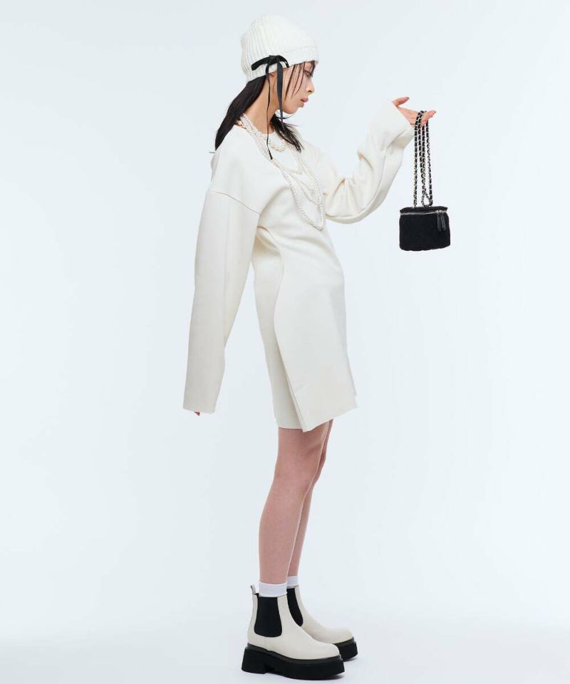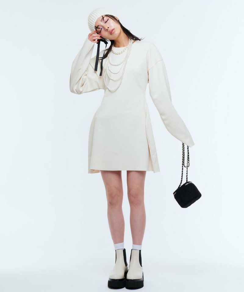 コクーンシルエットでボディラインを拾わず、体型カバーにもピッタリなワンピース。袖と裾は切りっぱなしデザインでシンプルながらも、一枚で着映えするアイテム。ロングシーズン着用できる生地感が嬉しいポイント。 【モデル】:H163 B78 H84 / H165 B78 H83