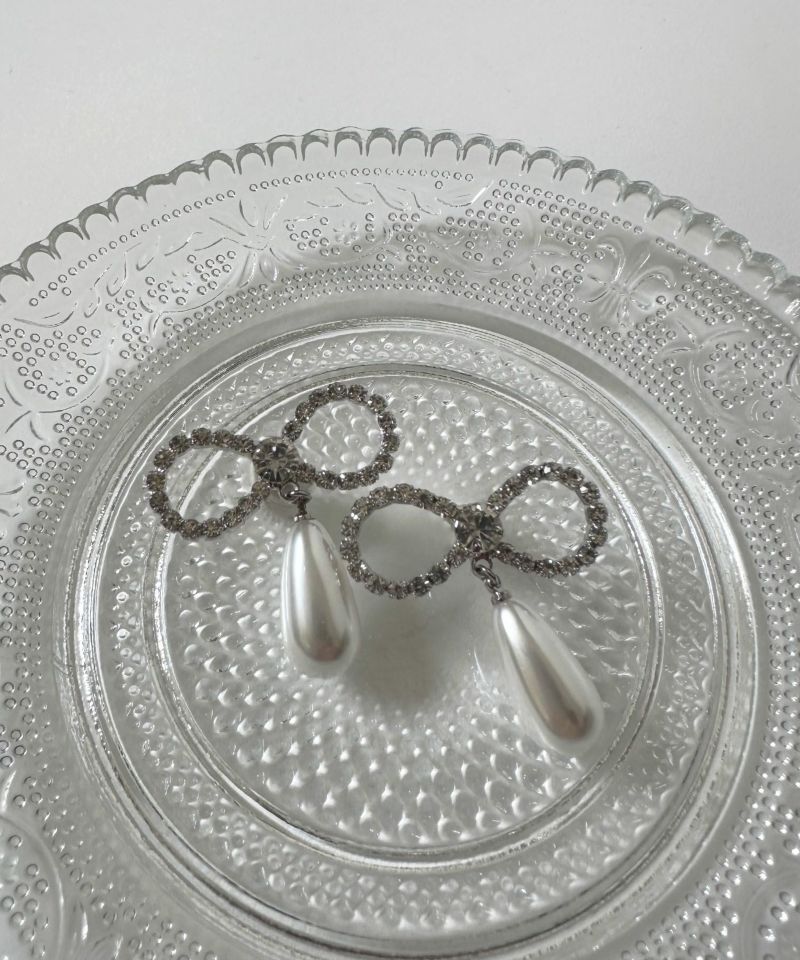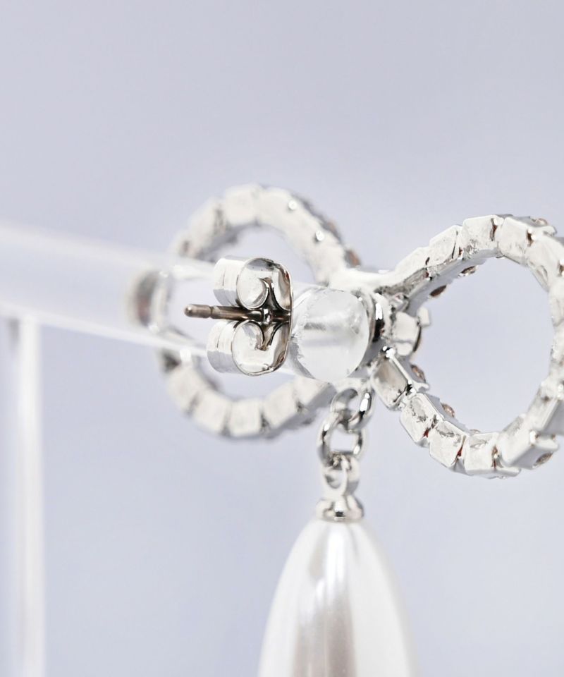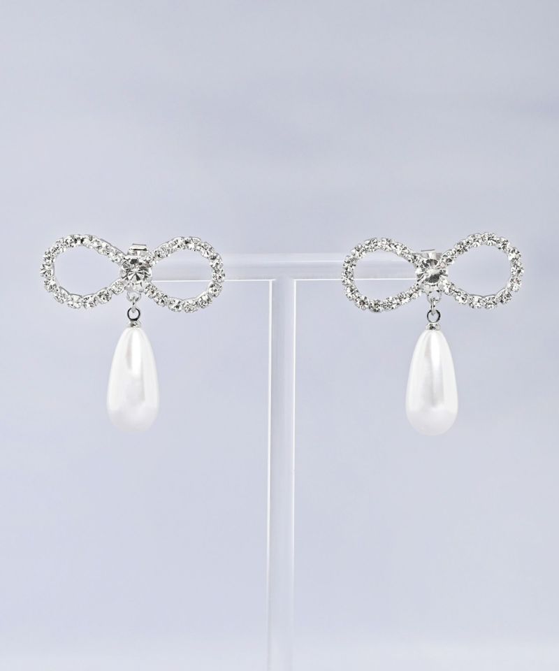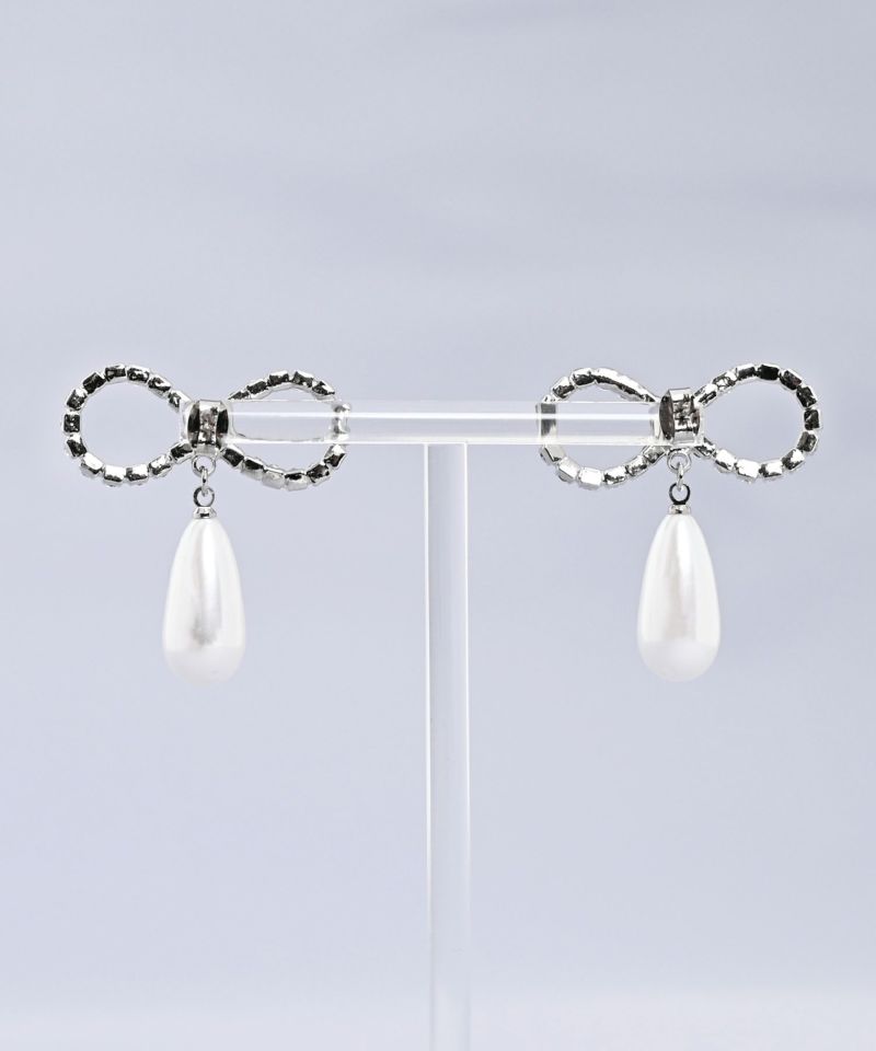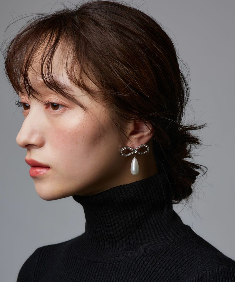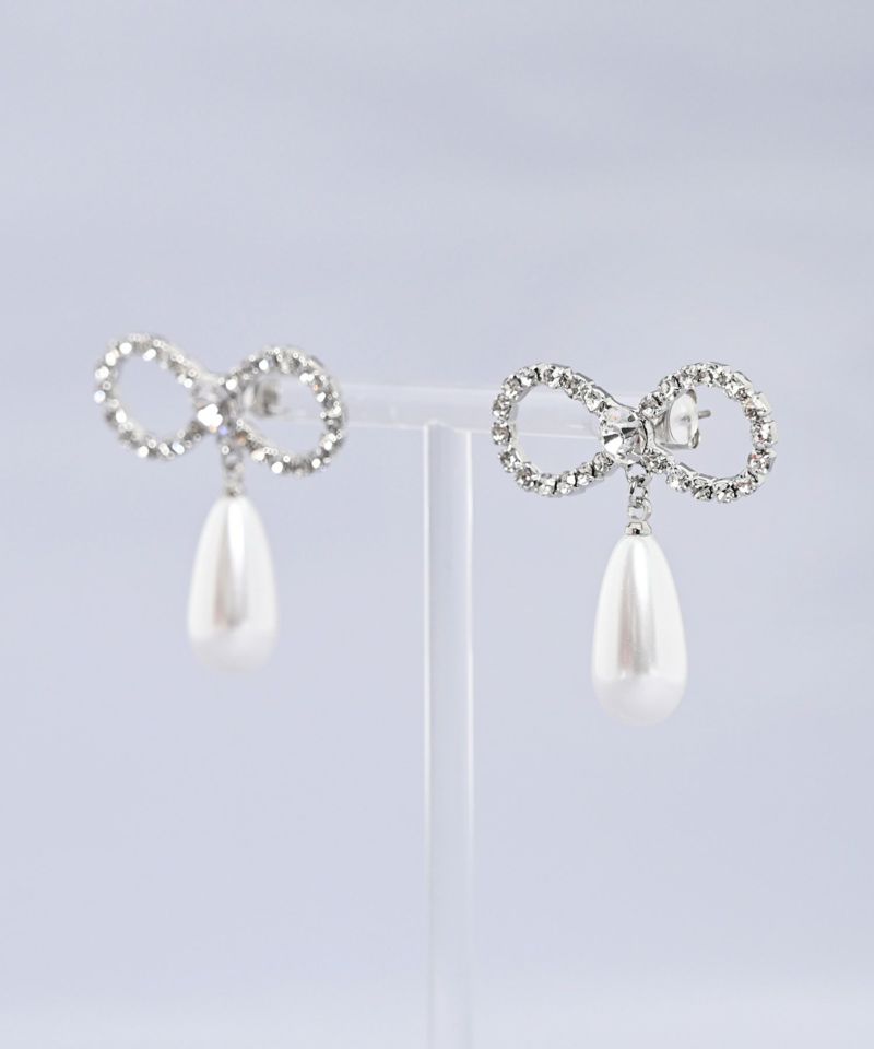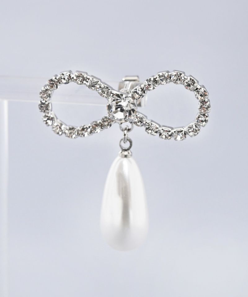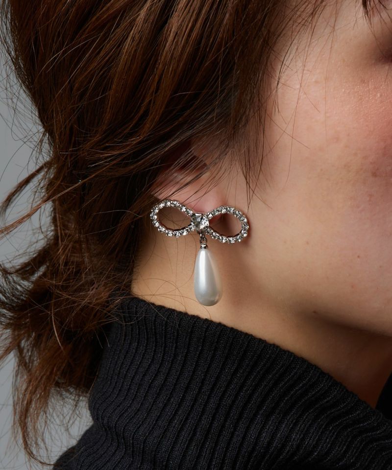 リボン型のビジュー×パールが可愛らしいピアス。上品で存在感のあるデザインがパーティーシーンや特別な日のオシャレにもピッタリ。もちろん普段のコーデに合わせていただくのも◎