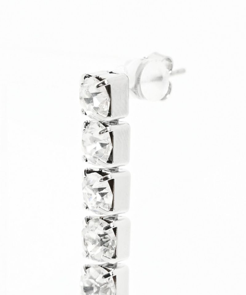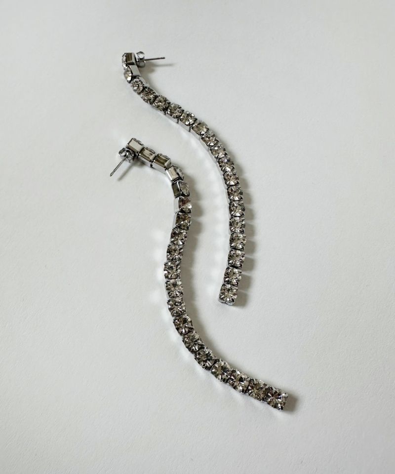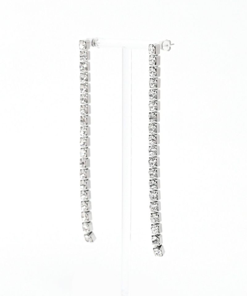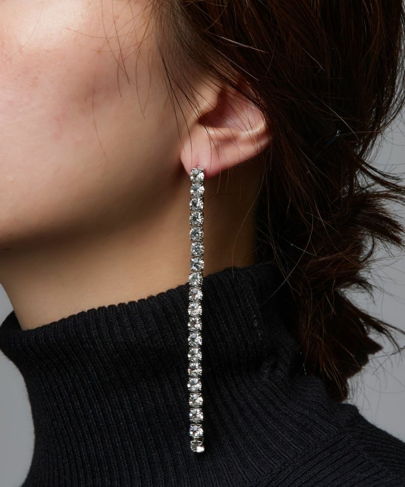 輝くロングビジューが特徴的なピアス。ナチュラルにもドレッシーにも合わせやすく、コーデのアクセントにオススメ。ロングながらも軽やかな付け心地で、長時間付けていてもストレスフリーです。
