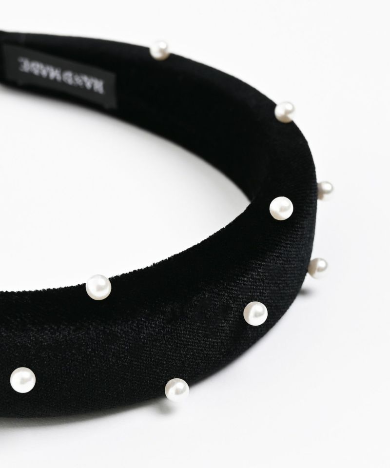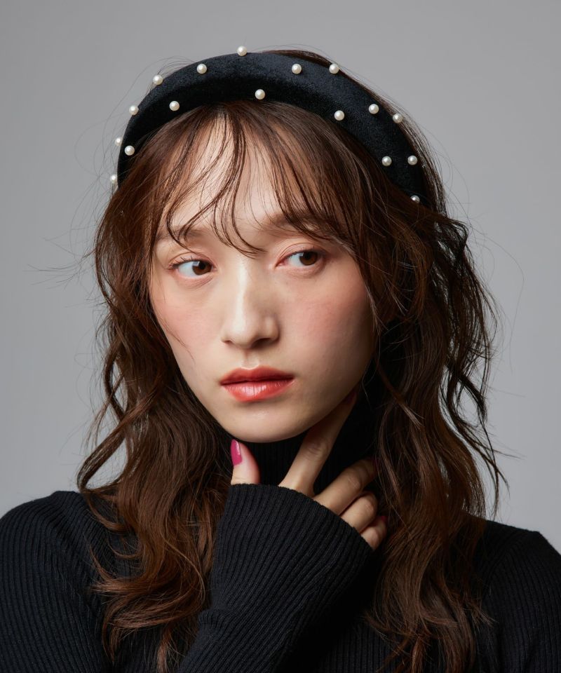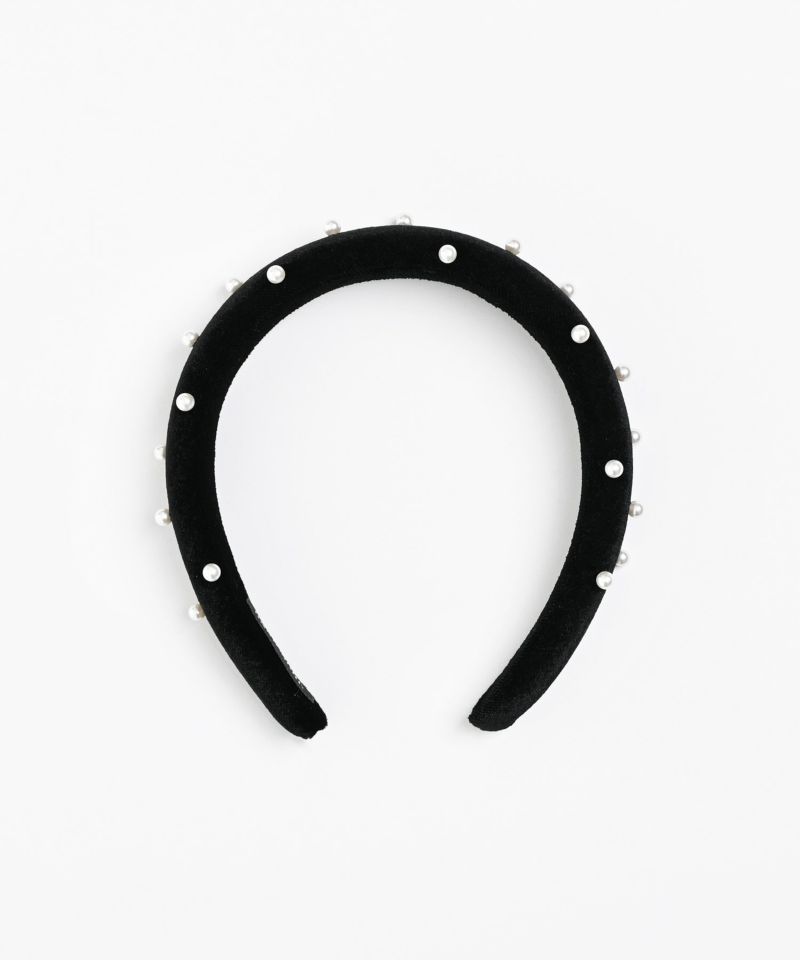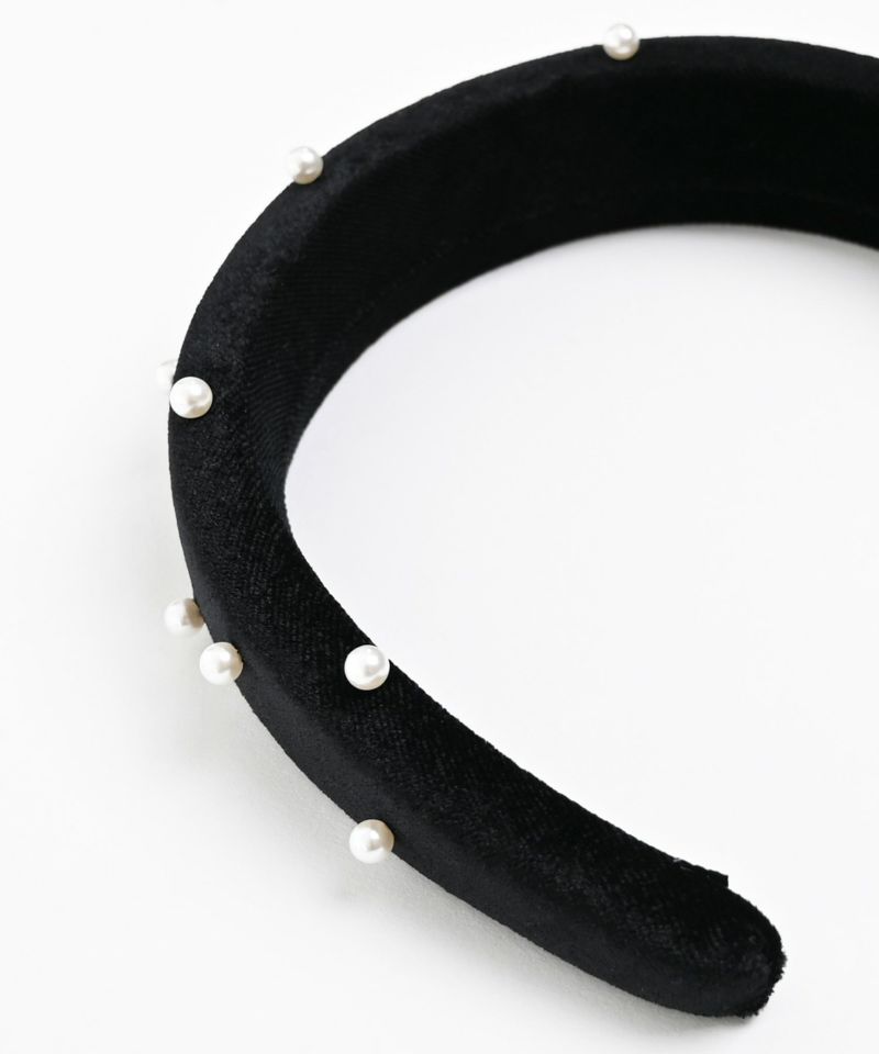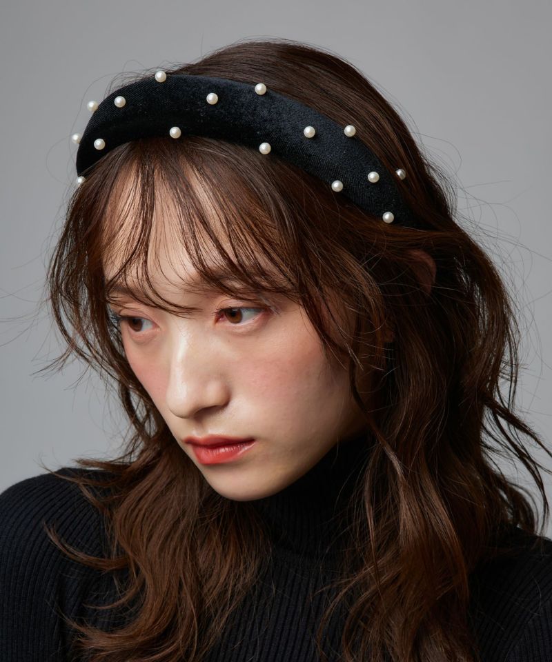 光沢のあるベロア素材にパーツを散りばめた主役級のヘアアクセサリー。普段使いにも、結婚式やパーティーなどのオケージョンシーンでも活躍できる万能アイテム。