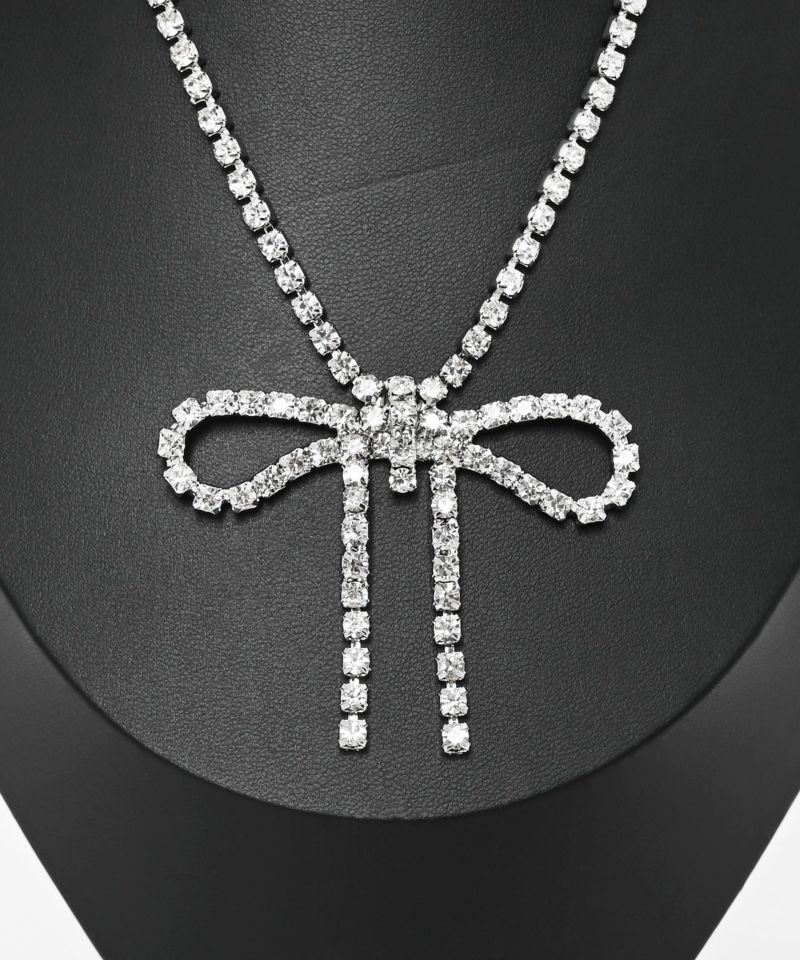ビジューで作られたリボンモチーフが特徴的なネックレス。ご自身の好みに合わせて、チェーンの長さが調整できるのも嬉しいポイント。パーティーシーンや普段のコーデまで幅広くお使いいただけます。