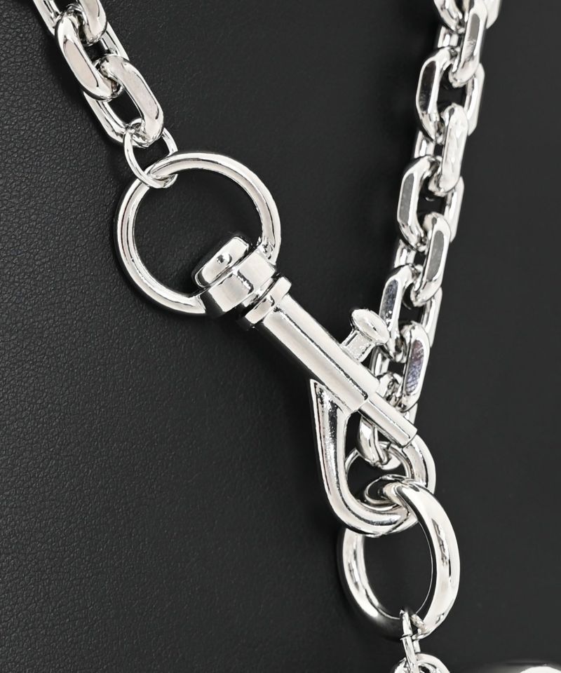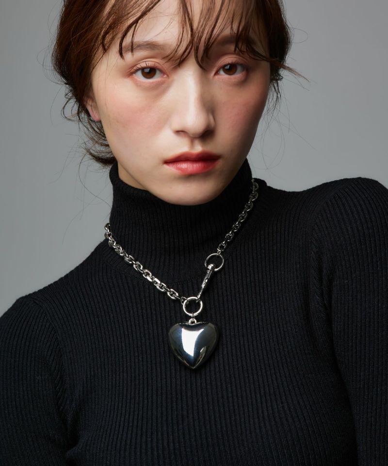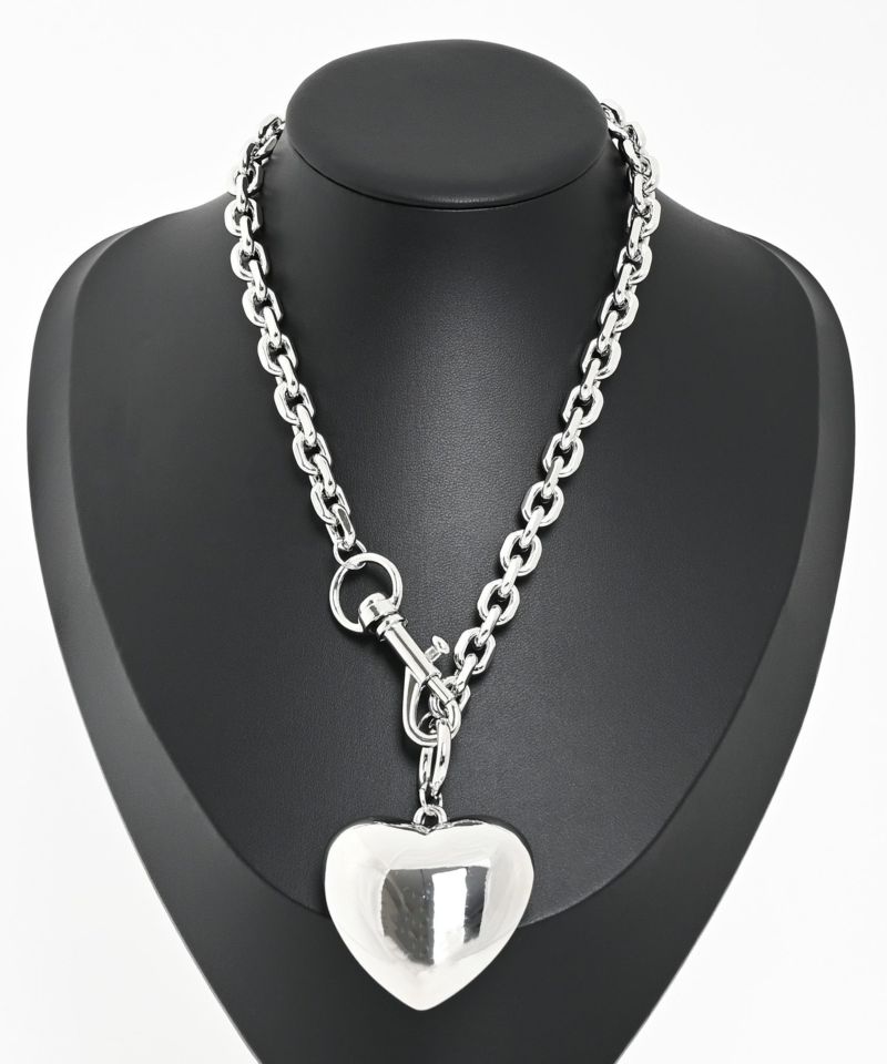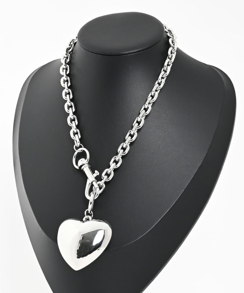ハートモチーフが目を惹くモードな印象のシルバーチェーンネックレス。ハートモチーフは大きめでチェーンも太めに設定されているので、存在感のあるプラスワンアイテムに。