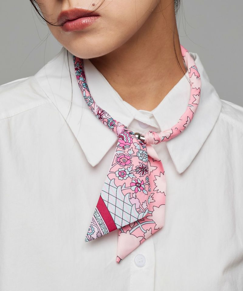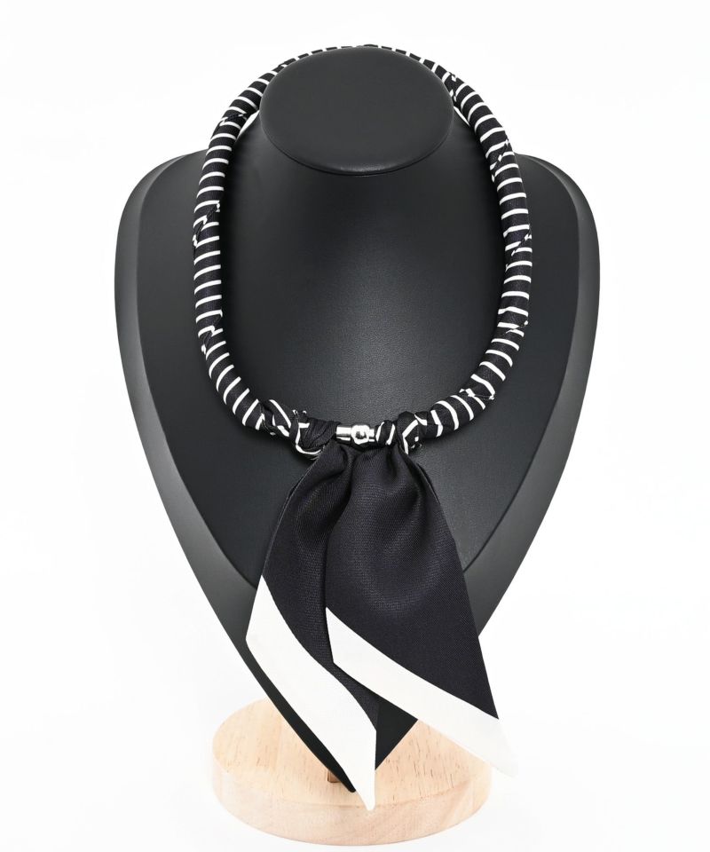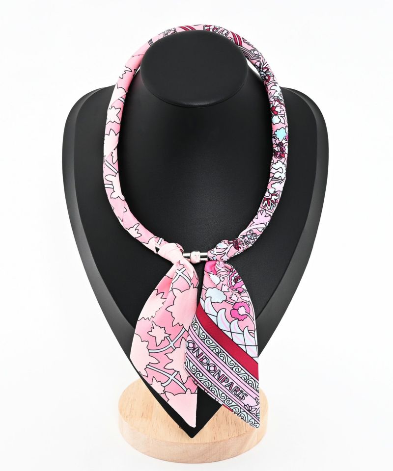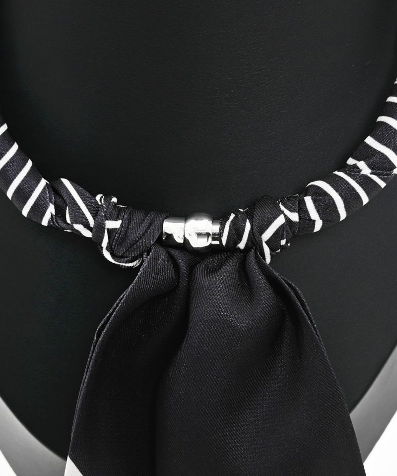 磁石で簡単に装着できる首元彩るスカーフ調ネックレス。首に負担のない軽さで、気軽にスカーフアイテムを楽しめます。普段のシンプルなトップスにプラスするだけで、お洒落度アップする万能アイテム。