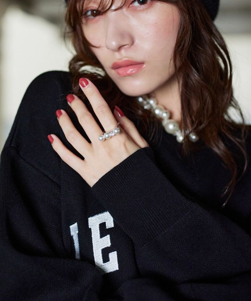 艶やかなパールにビジューの上質感ある輝きが加わり、さりげない個性をプラスしてくれるデザイン。シンプルながら程よい立体感があり、重たく見えることなく指先をすっきりと見せてくれるサイズ感で、幅広いコーディネートに馴染みます。