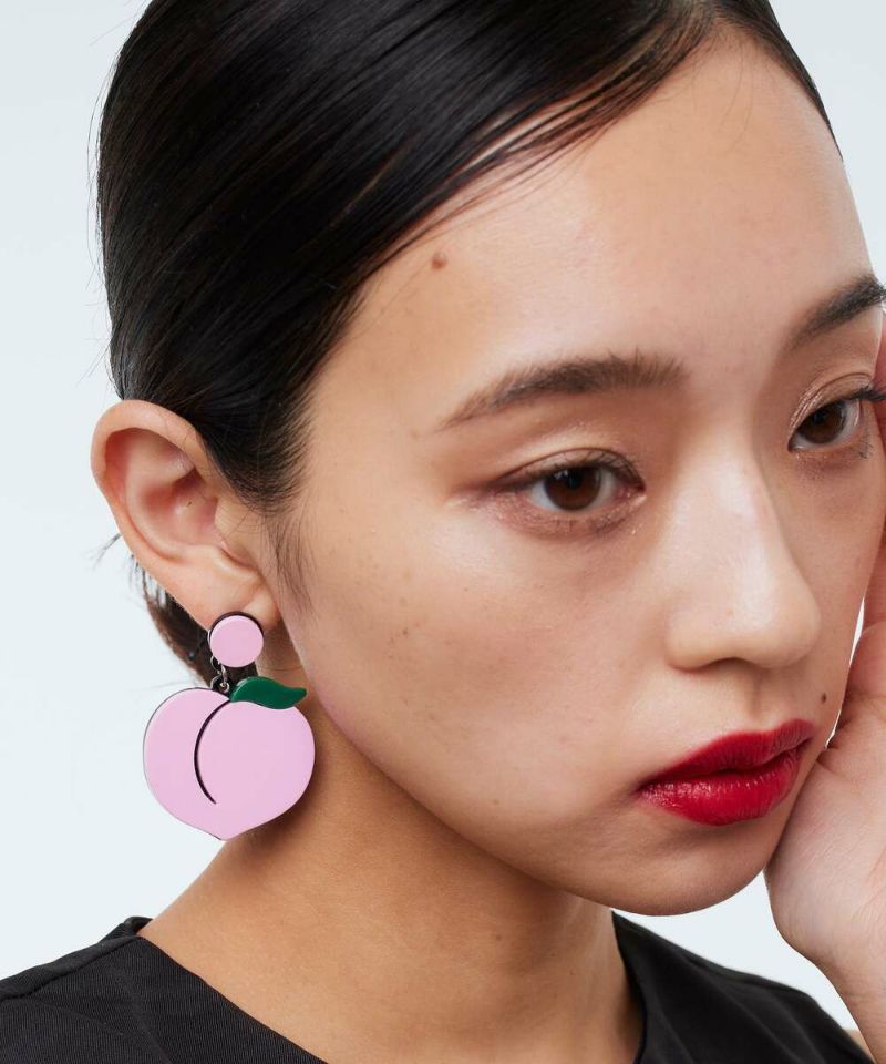 身に着けるだけでフレッシュな気分になりそうな遊び心のあるピーチモチーフピアス。大きめのボリューム感は、顔周りに華やかさをプラス。